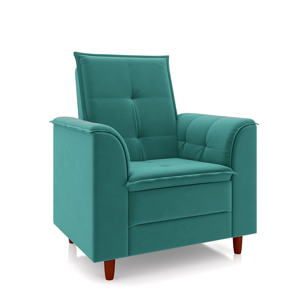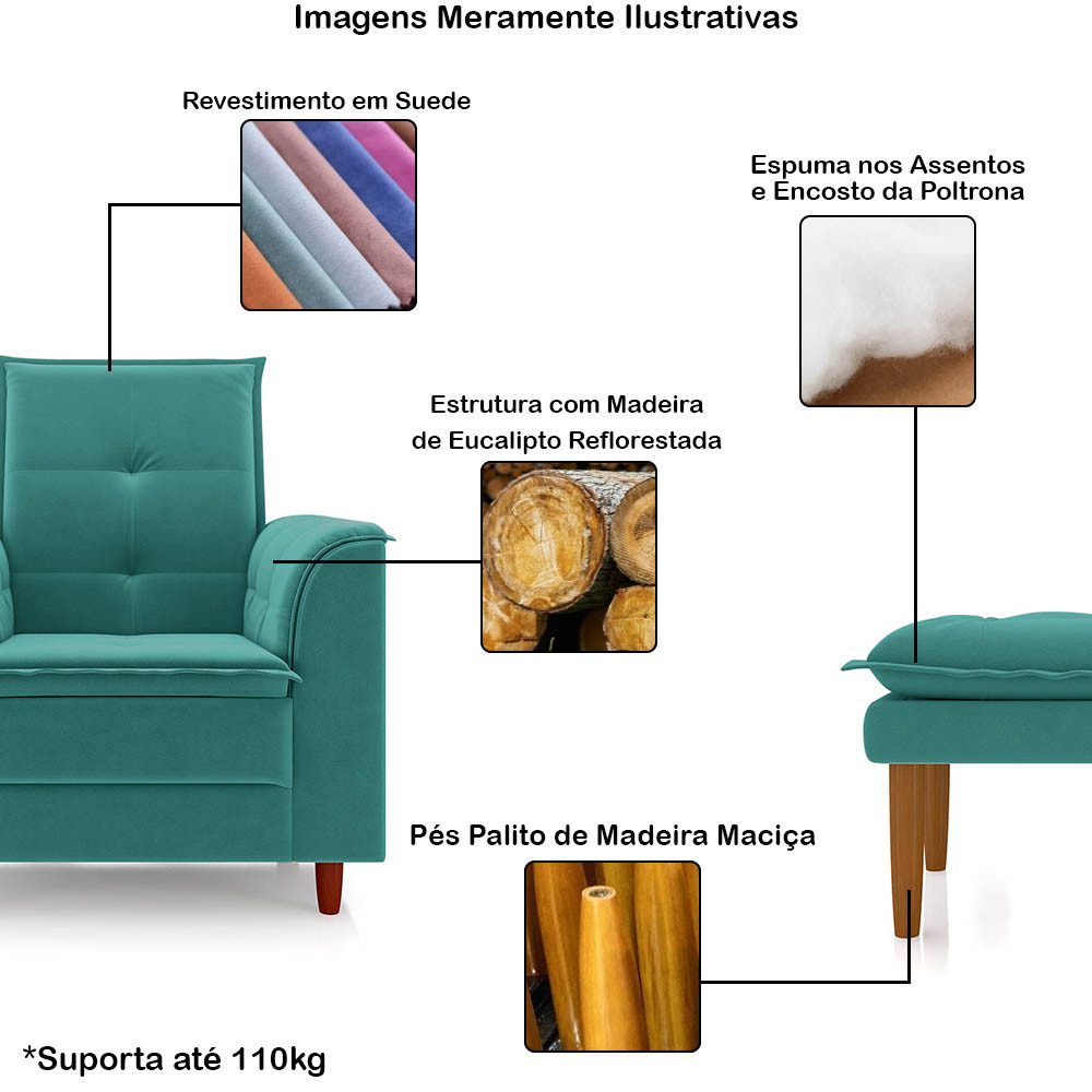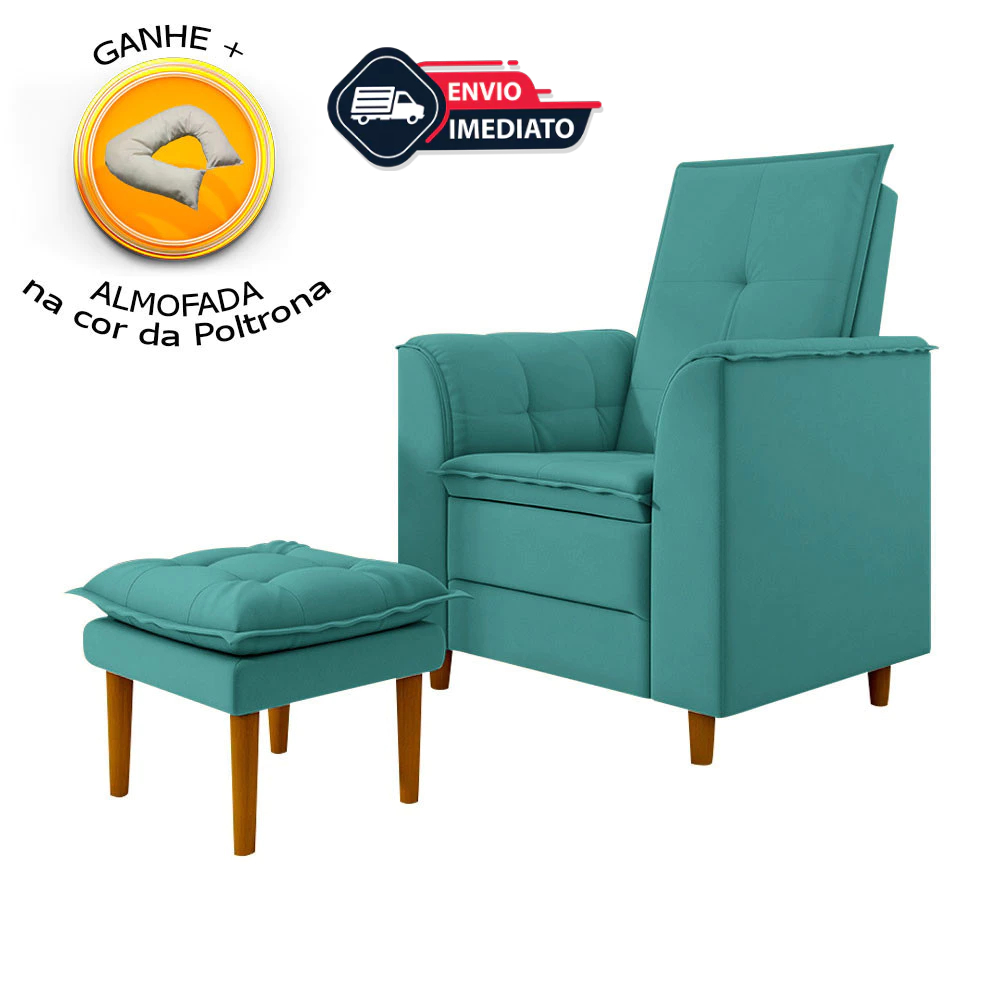 Poltrona de Amamentação Quarto Infantil com Puff Kate Pés Palito Suede Azul Turquesa + Binde Amofada