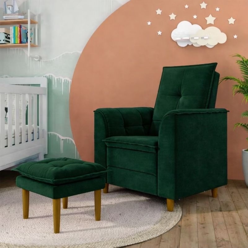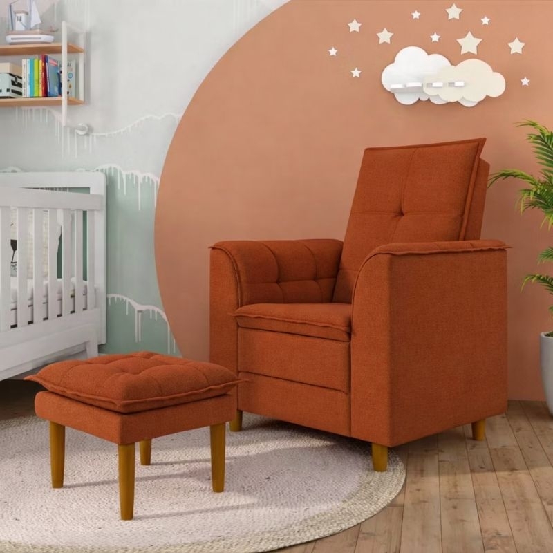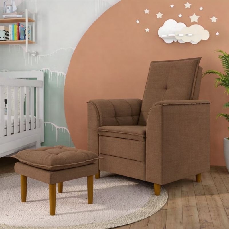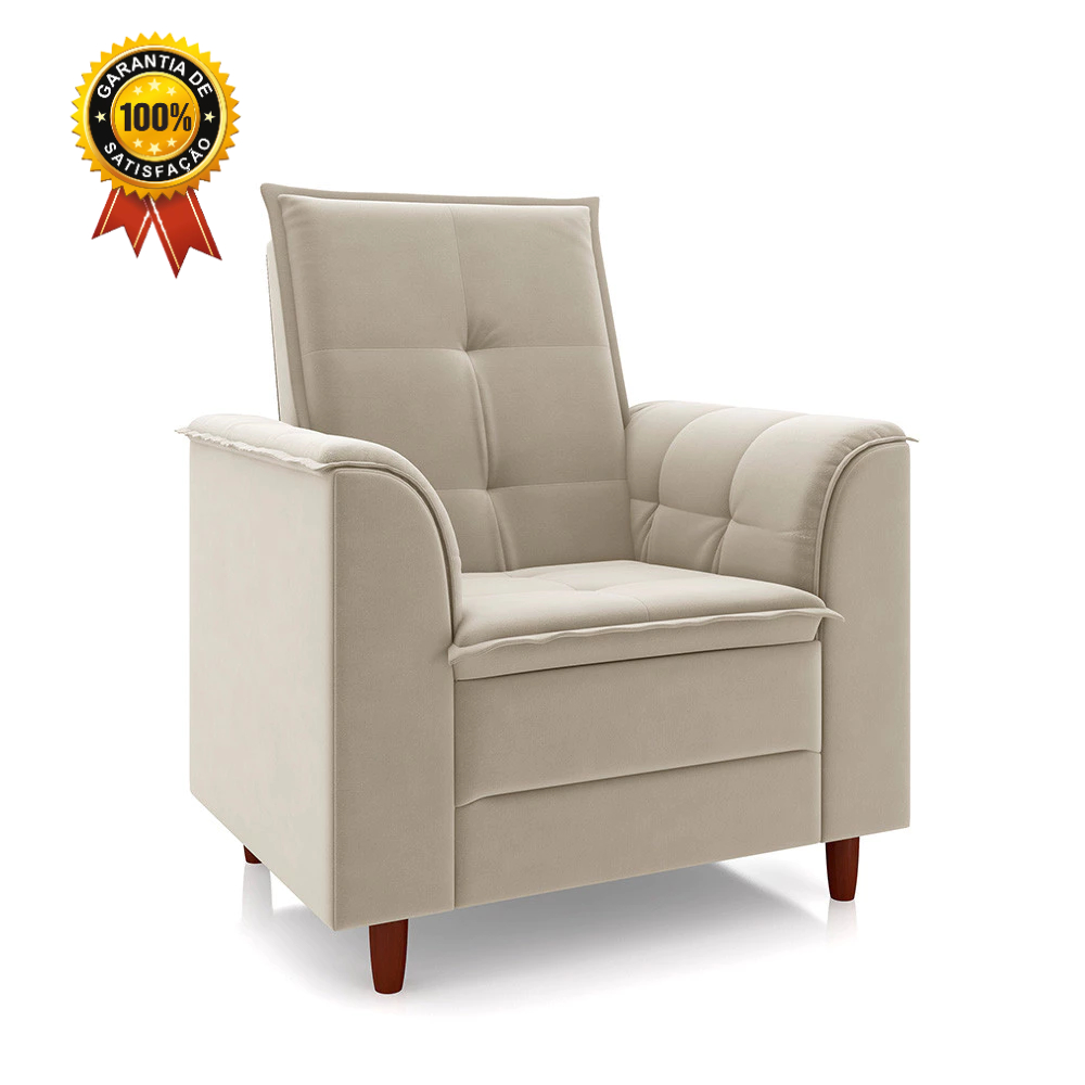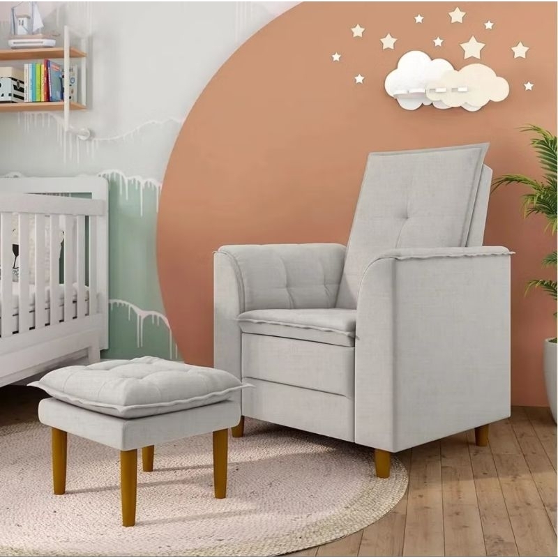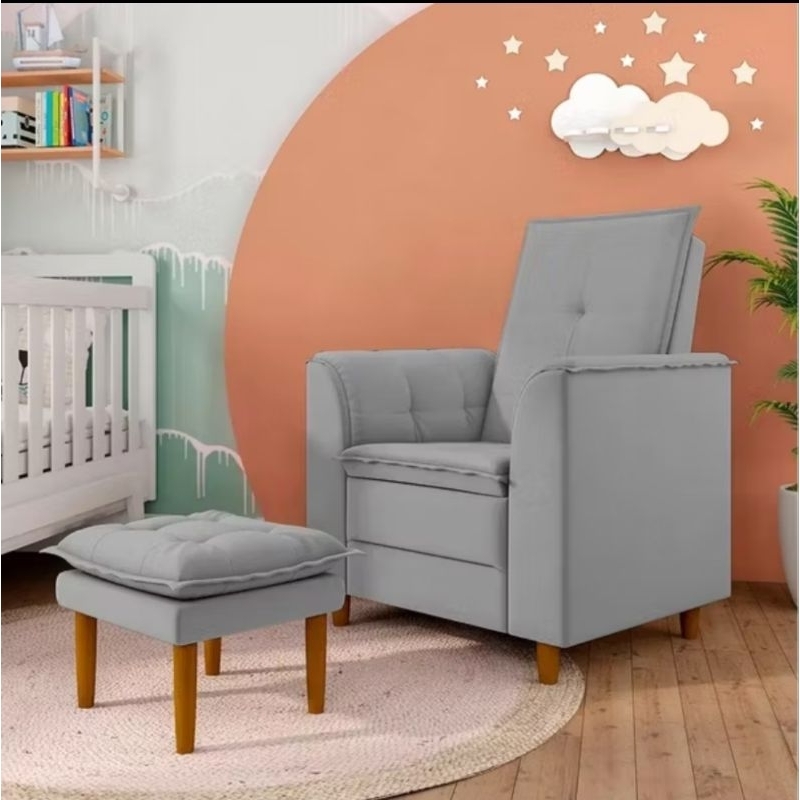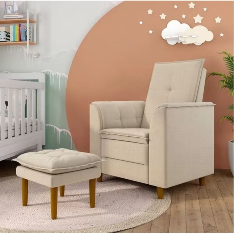 Poltrona Amamentação + Puff Suede Bege Envio Rápido