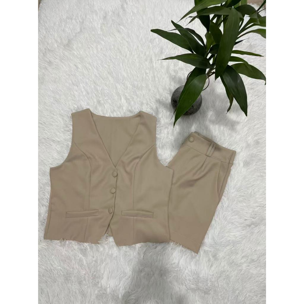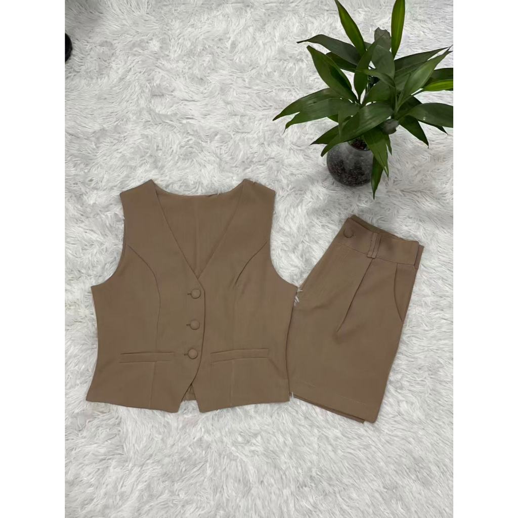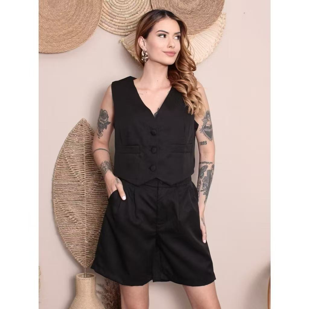 Colete feminino com shorts sociais tecido marrante2051 linlinmoda