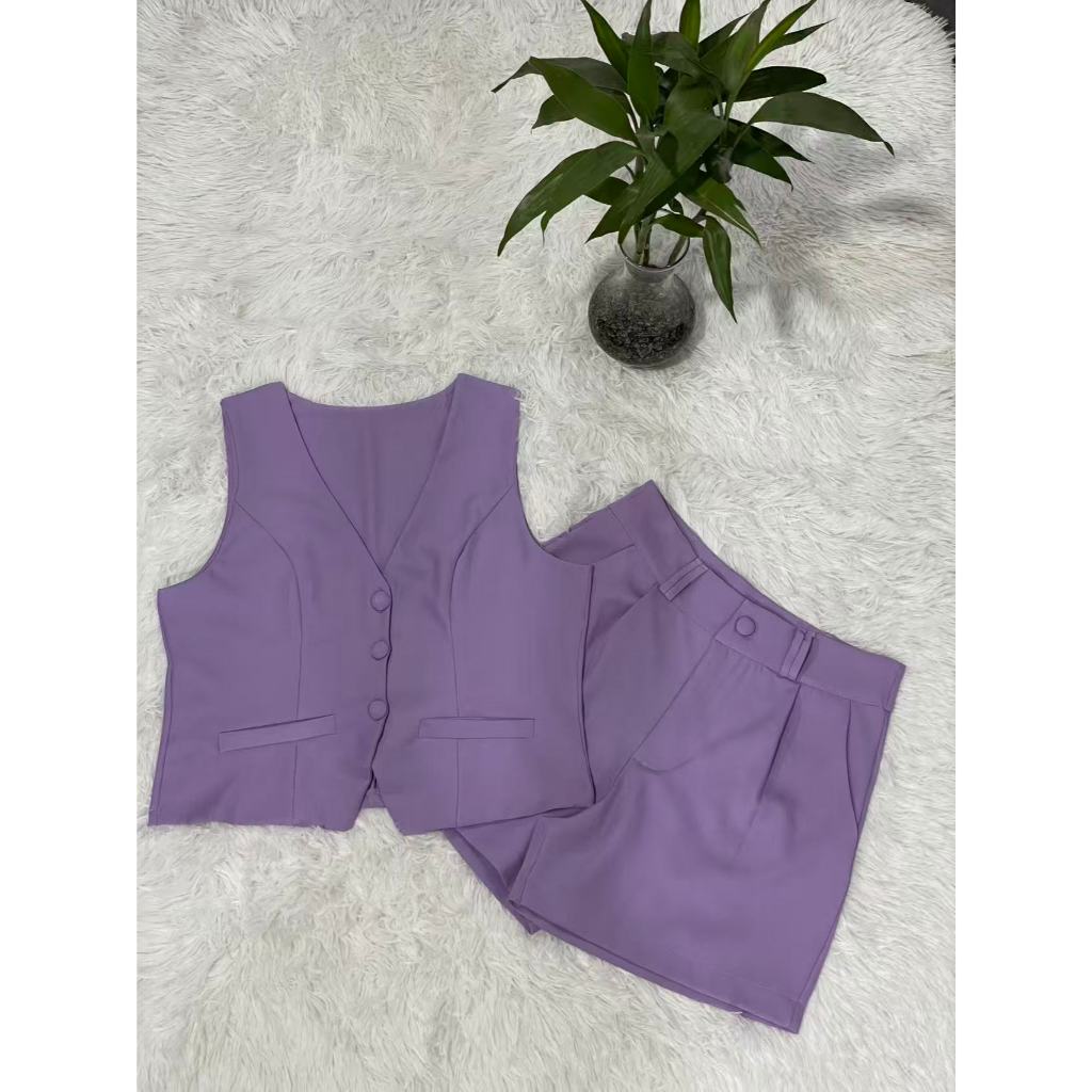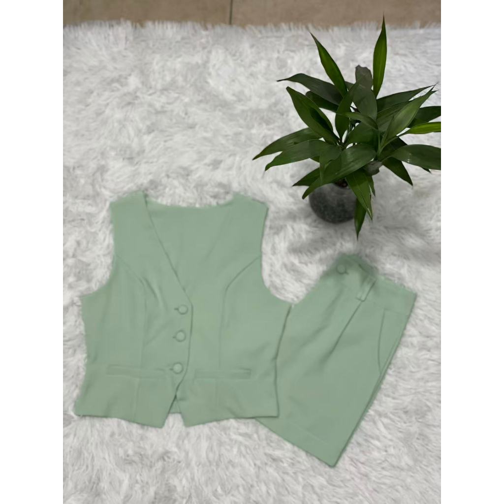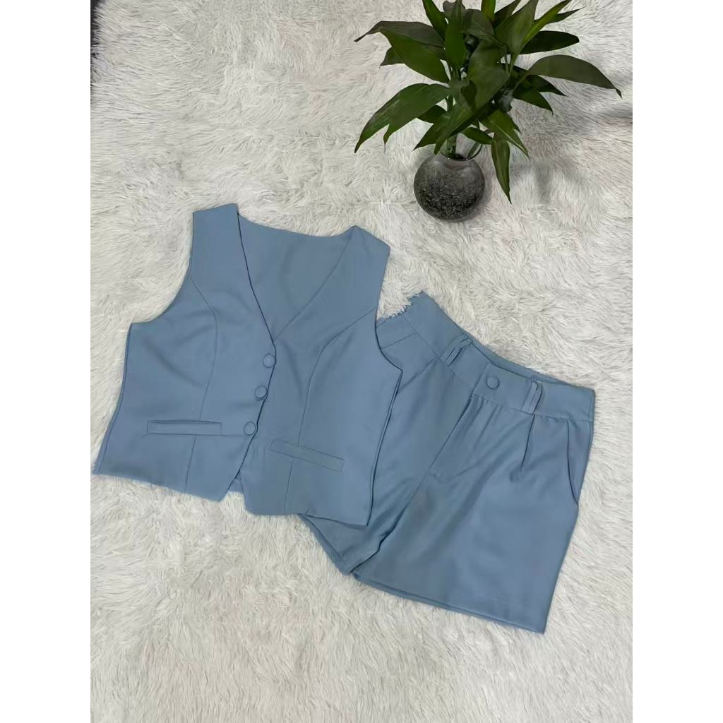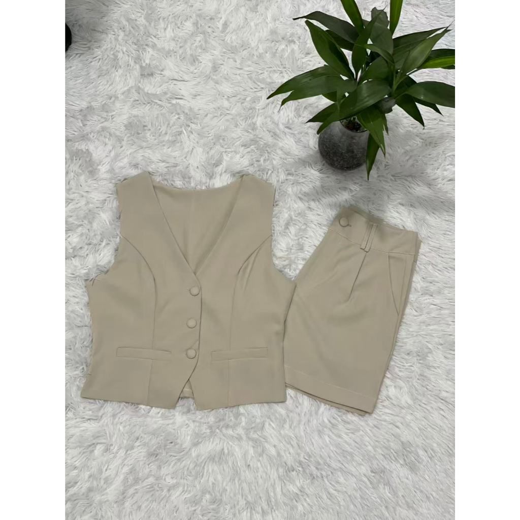 Colete feminino com shorts sociais tecido marrante2051 linlinmoda