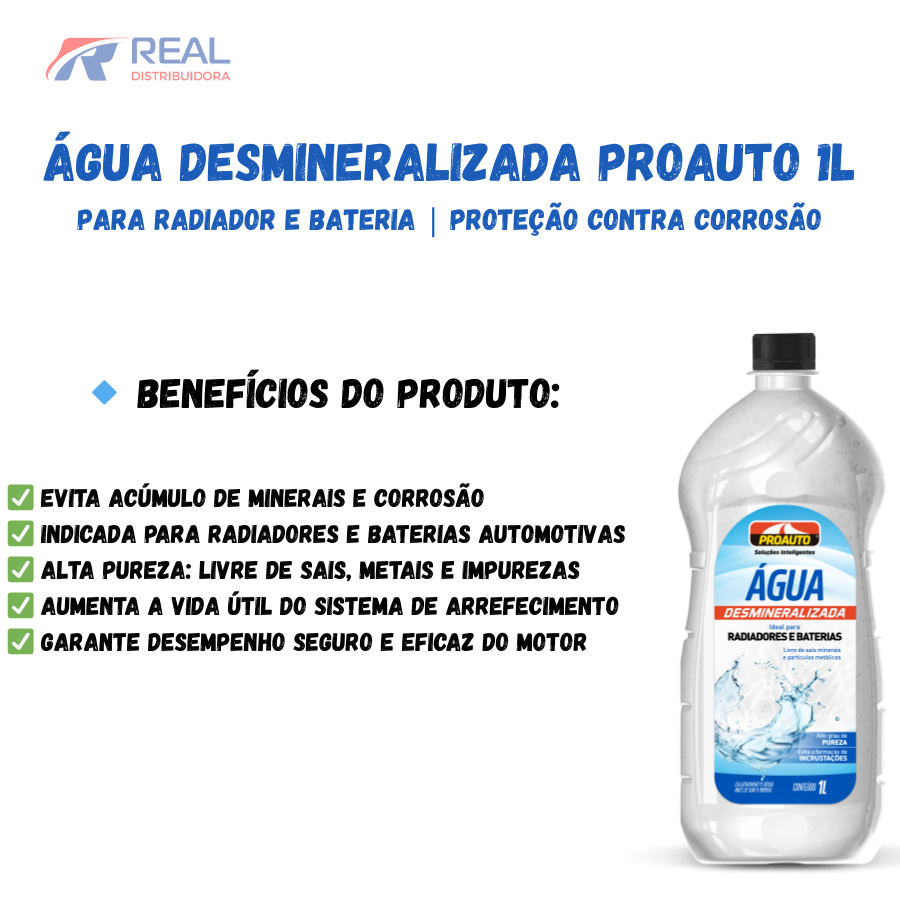 Água Desmineralizada Proauto 1L – Para Radiador e Bateria | Proteção contra Corrosão