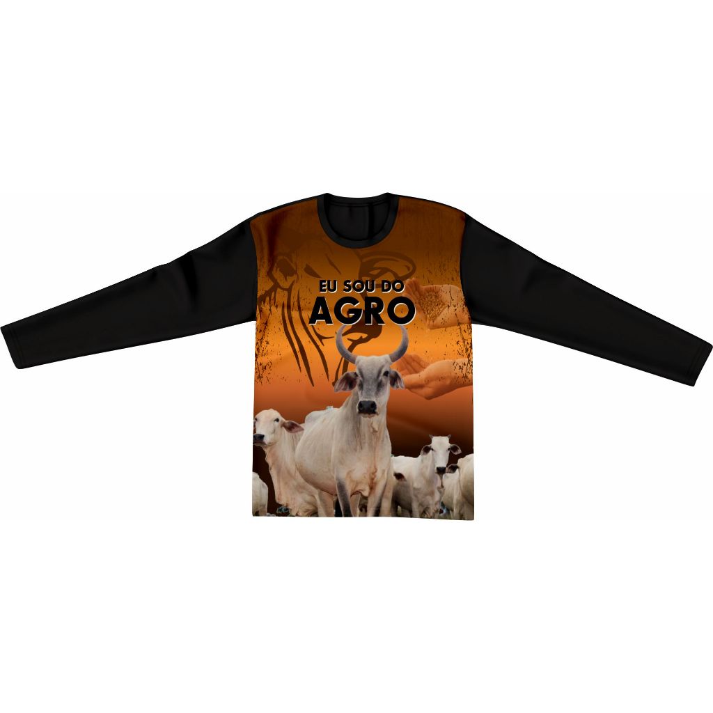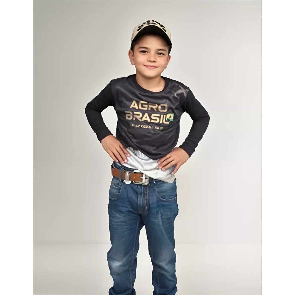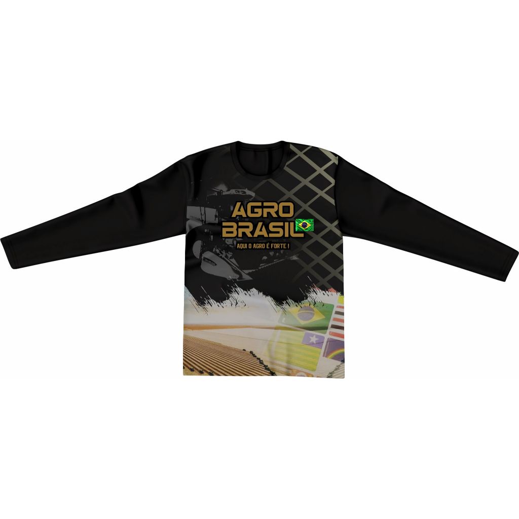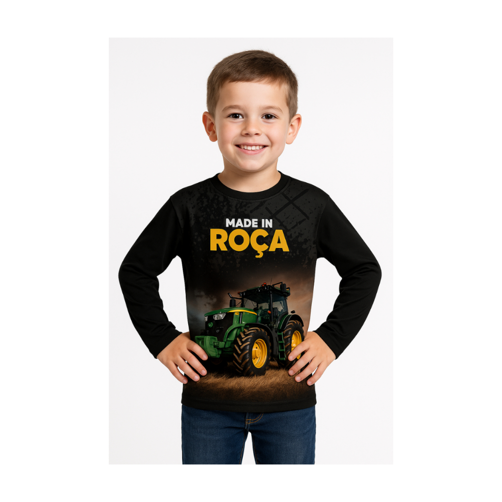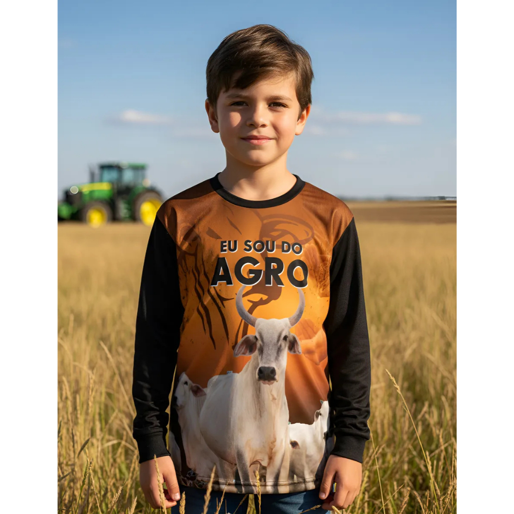 Camisa Camiseta Manga longa Infantil Masculina Agro Blusa com Proteção Solar Uv Tecido Dry Fit