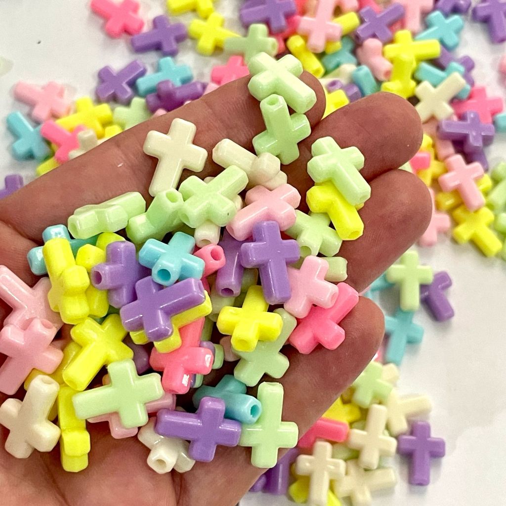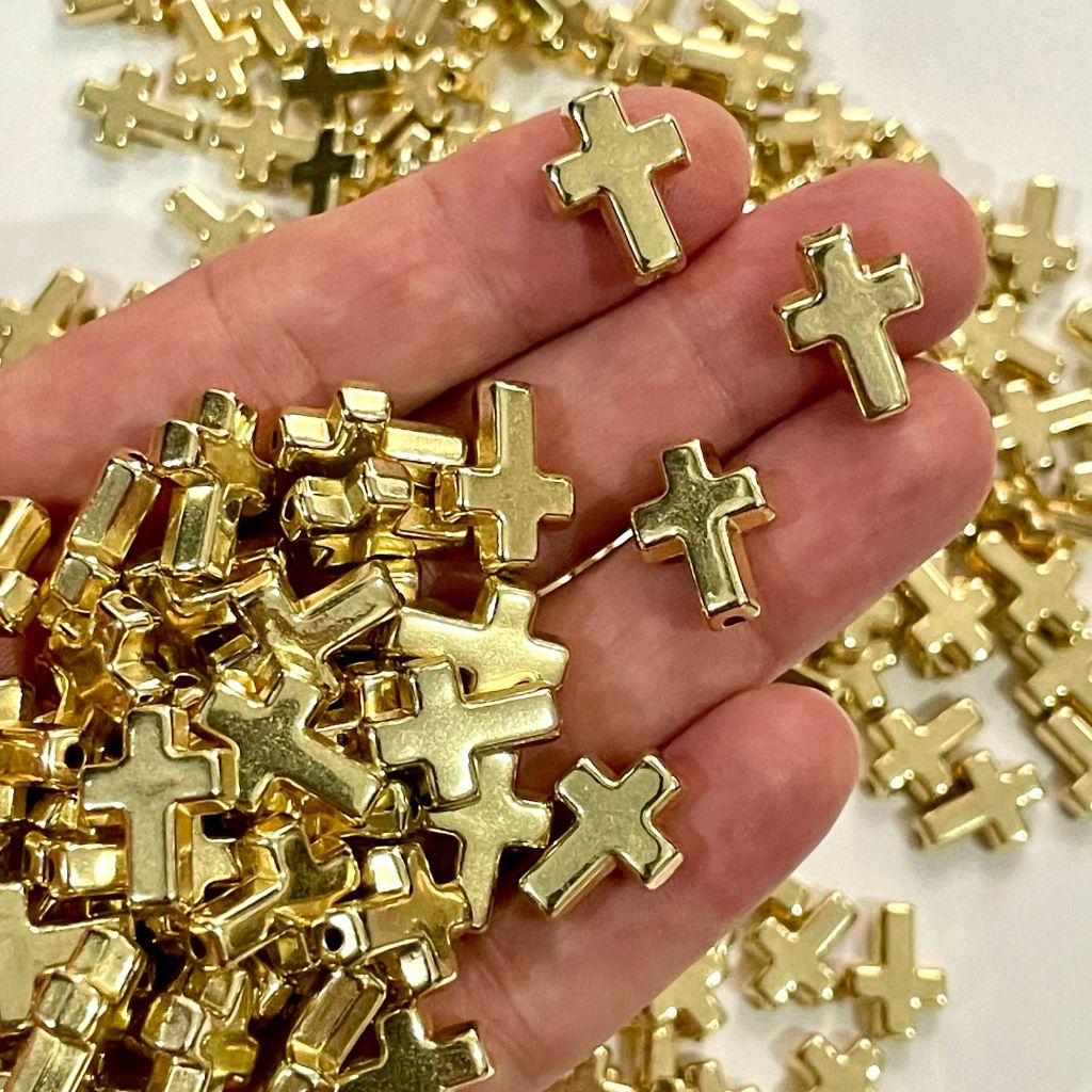 Entremeio Miçanga Cruz com Furo Passante 100 pçs Para Colar Pulseiras Chaveiros Artigos Religioso