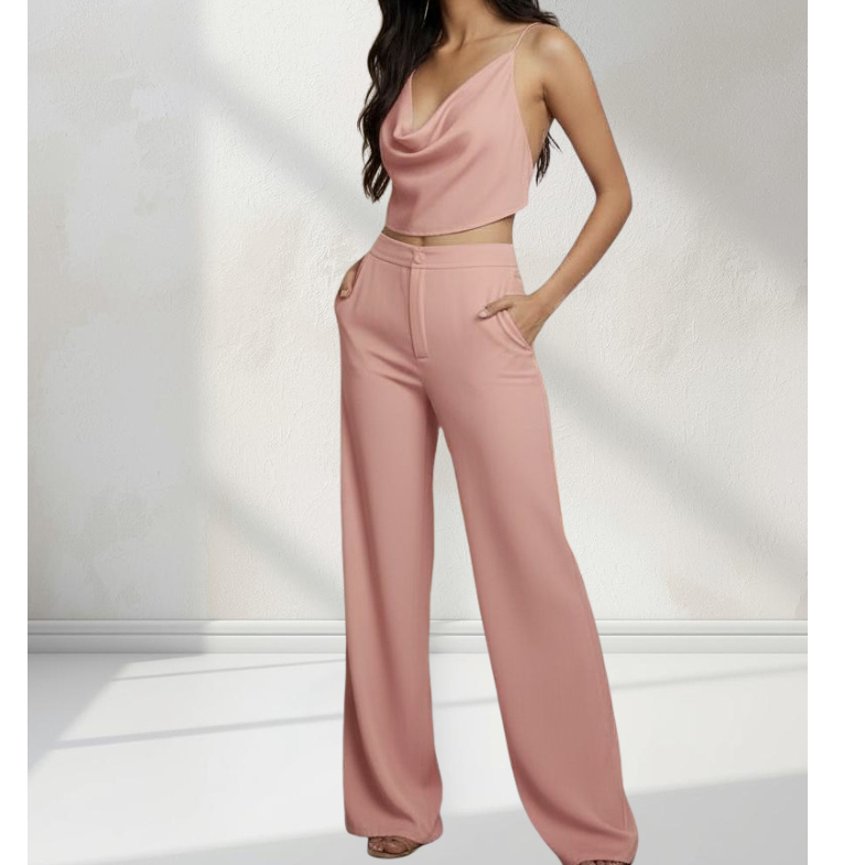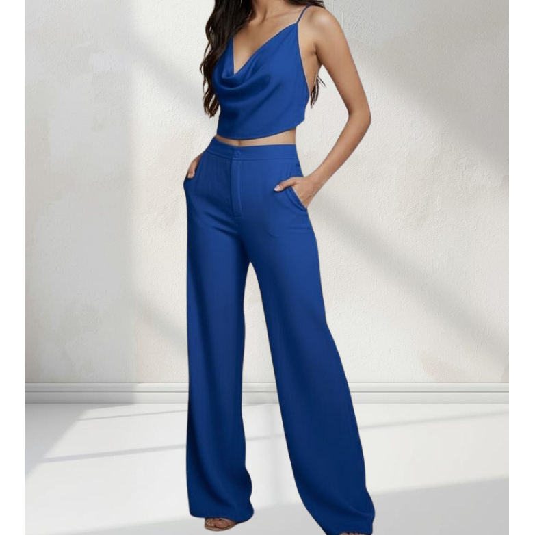 Conjunto Verão Feminino - Calça Pantalona + Blusa Cropped MultiFormas Duna Premium - P ao GG - Elegante Leve Confortável