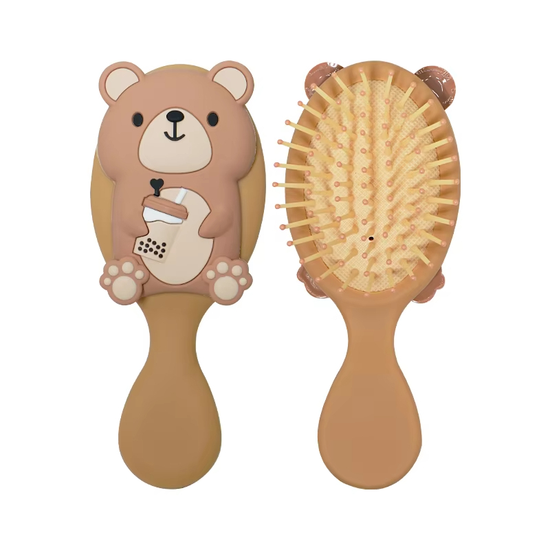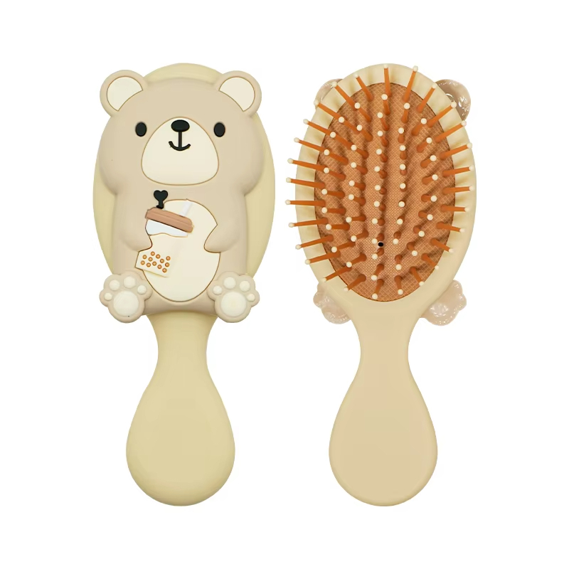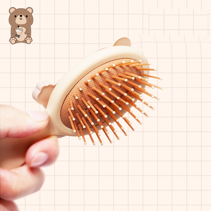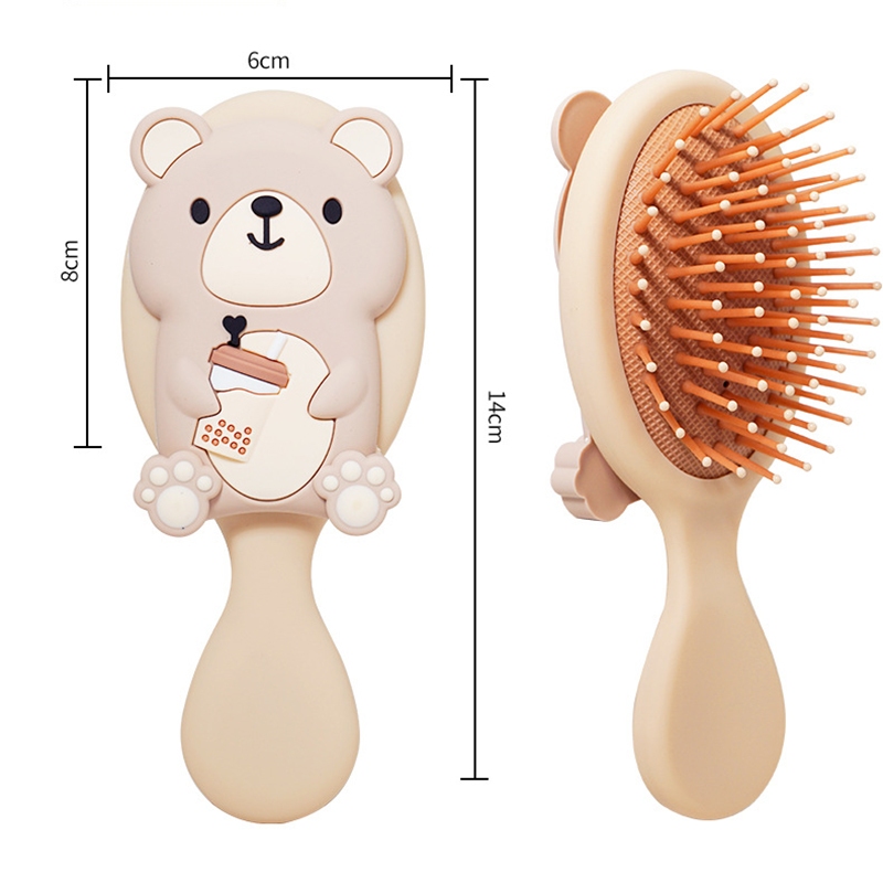 Bebê Bonito Leite Chá Urso Padrão Pente De Cabelo Estilo Dentes Macios Alça De Plástico Escova Airbag Massagem Cabeça