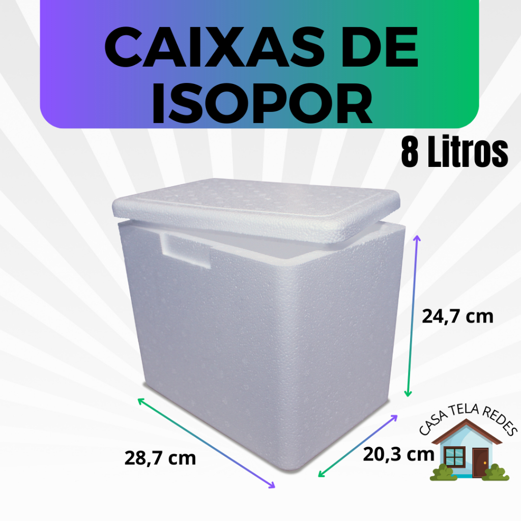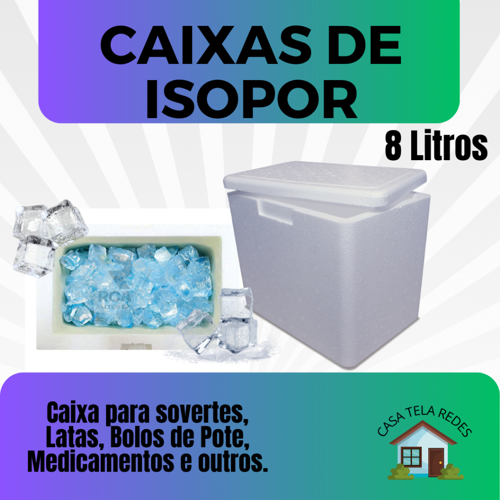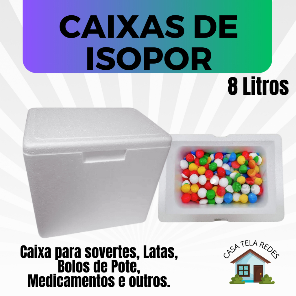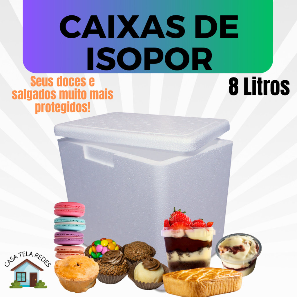 1 Caixa Isopor 8 litros EPS para Transporte de Bolos de Pote, Sobremesas, Empadas, Sorvetes, Latas