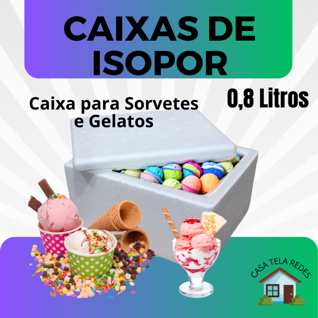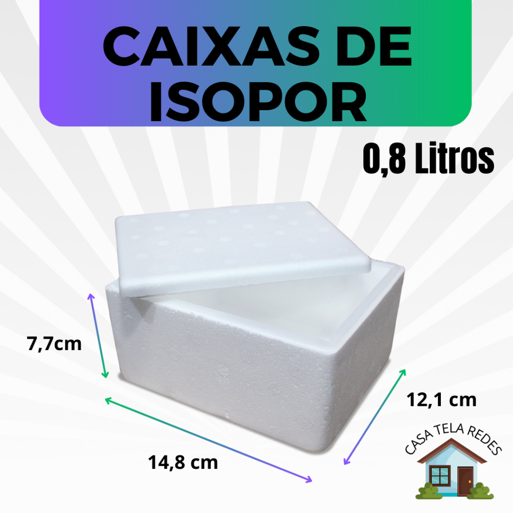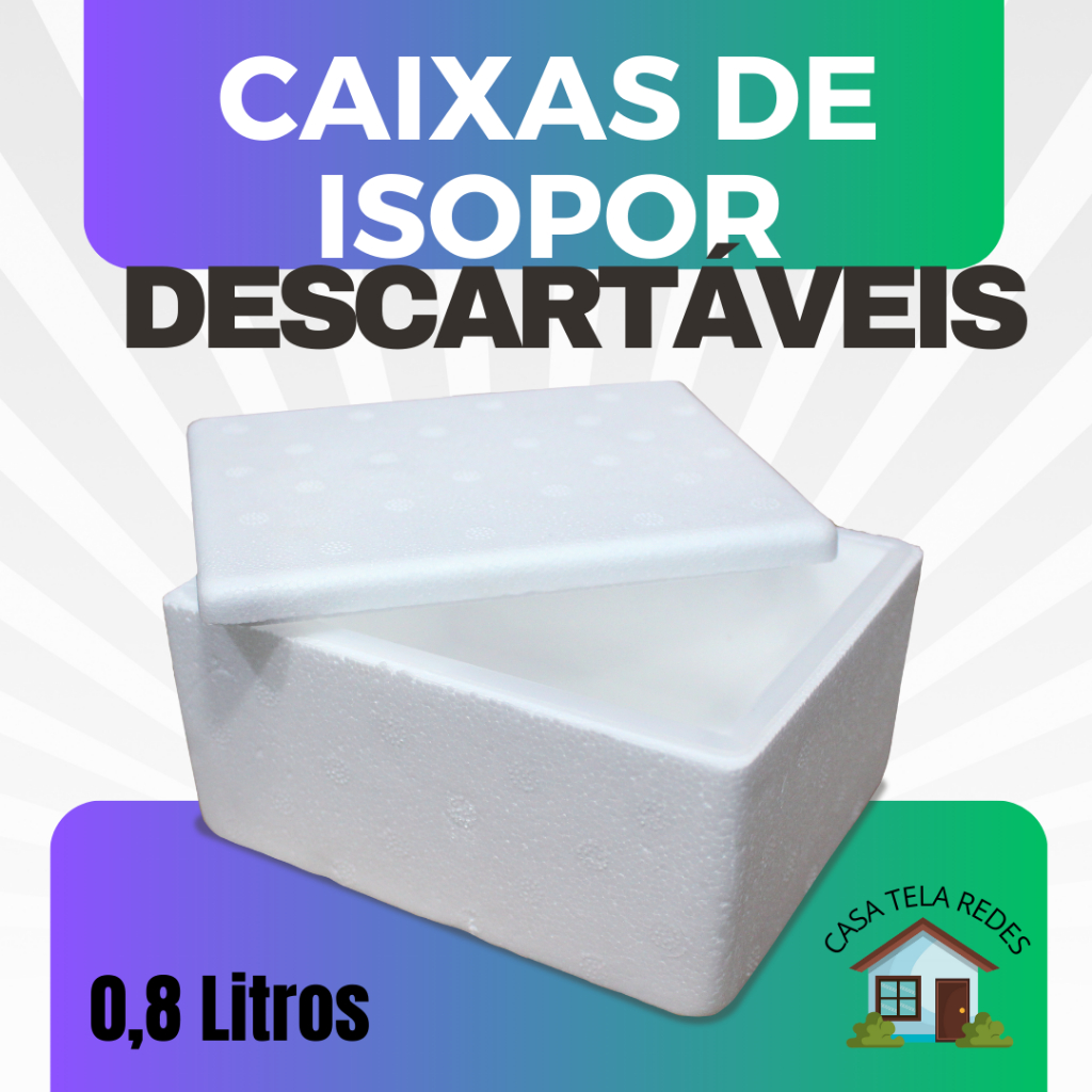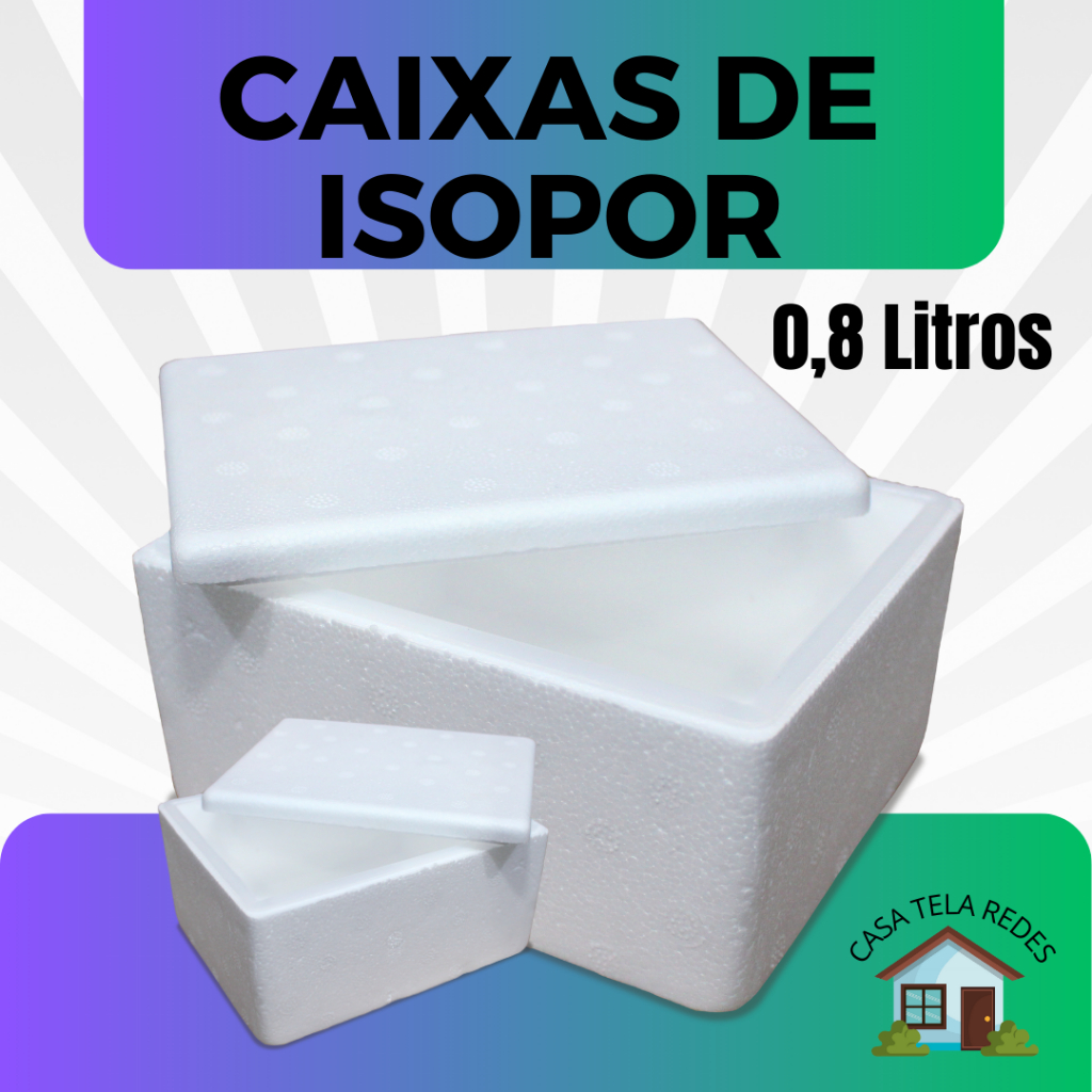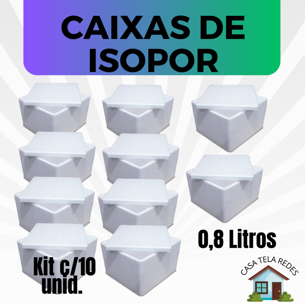kit com 10 Caixas de Isopor EPS 0,8 Litros para Armazenamento de Gelatos, Sovertes e Medicamentos