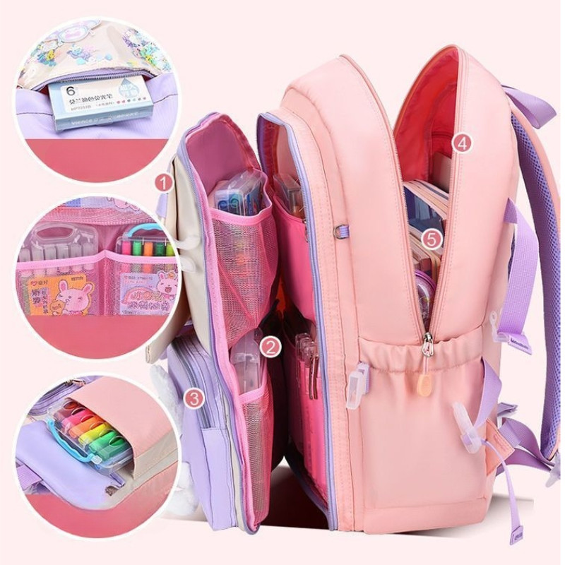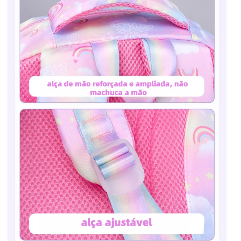 Mochila Escolar Menina Abertura 180° Grande Capacidade Juvenil Leve Reforçada Princesa Viagem Passeio