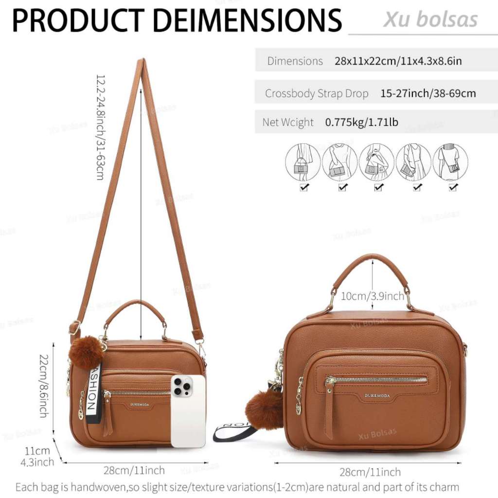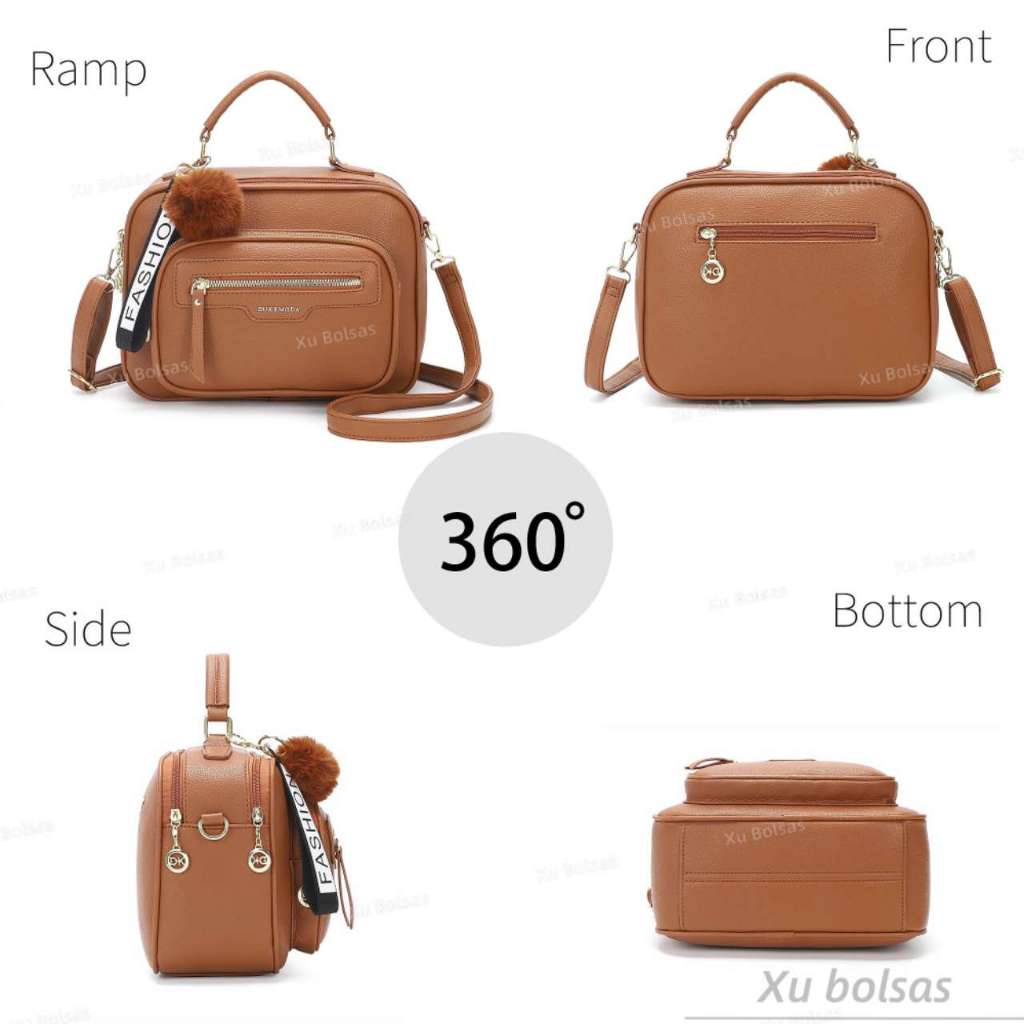 Bolsa Feminina Com Chaveiro Pompom Tira Colo Faixa de Mão De Couro Tranversal DEC6017#