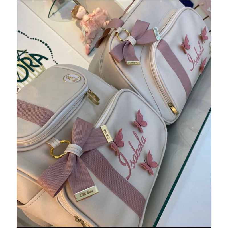 Kit bolsas de luxo p/ maternidade personalizadas, 3 peças menina/menino