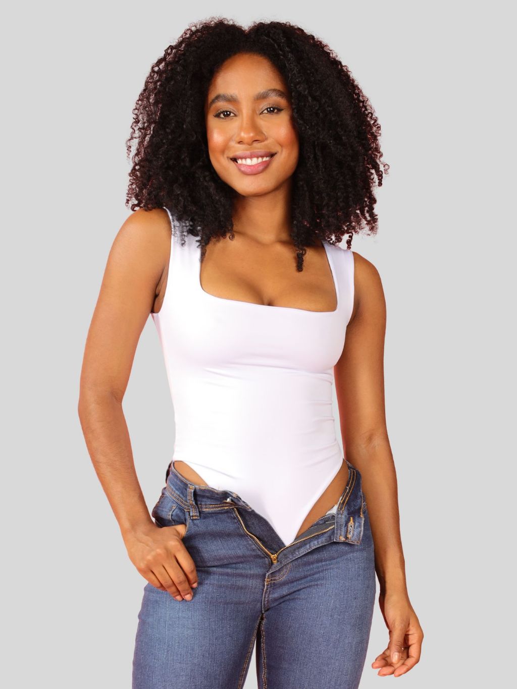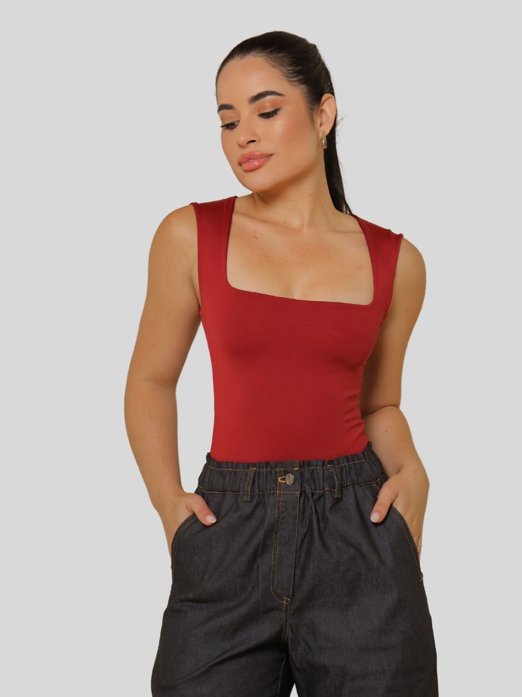 Body Feminino Decote Quadrado Alça Larga Suplex Duplo Moda Tendência - Compre já