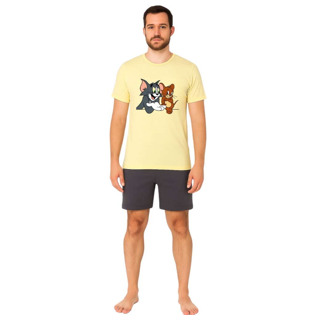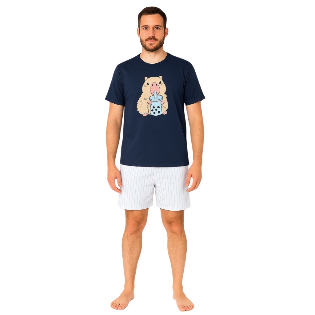 Pijama Masculino Verão Curto com Estampa Divertida Manga Curta E Short