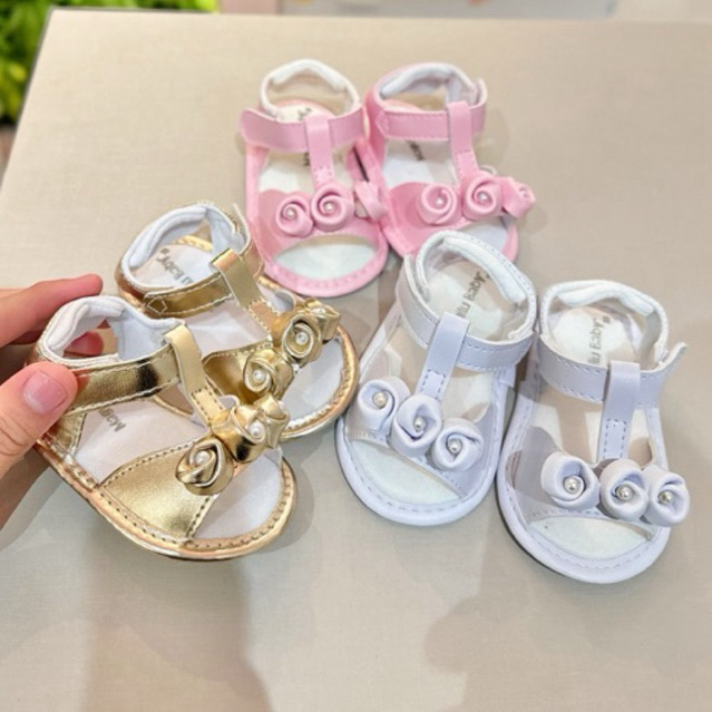 Sandália Para Bebê Menina Batismo Maria Confortável 3 Rosas Lançamento Mundo Mini Baby