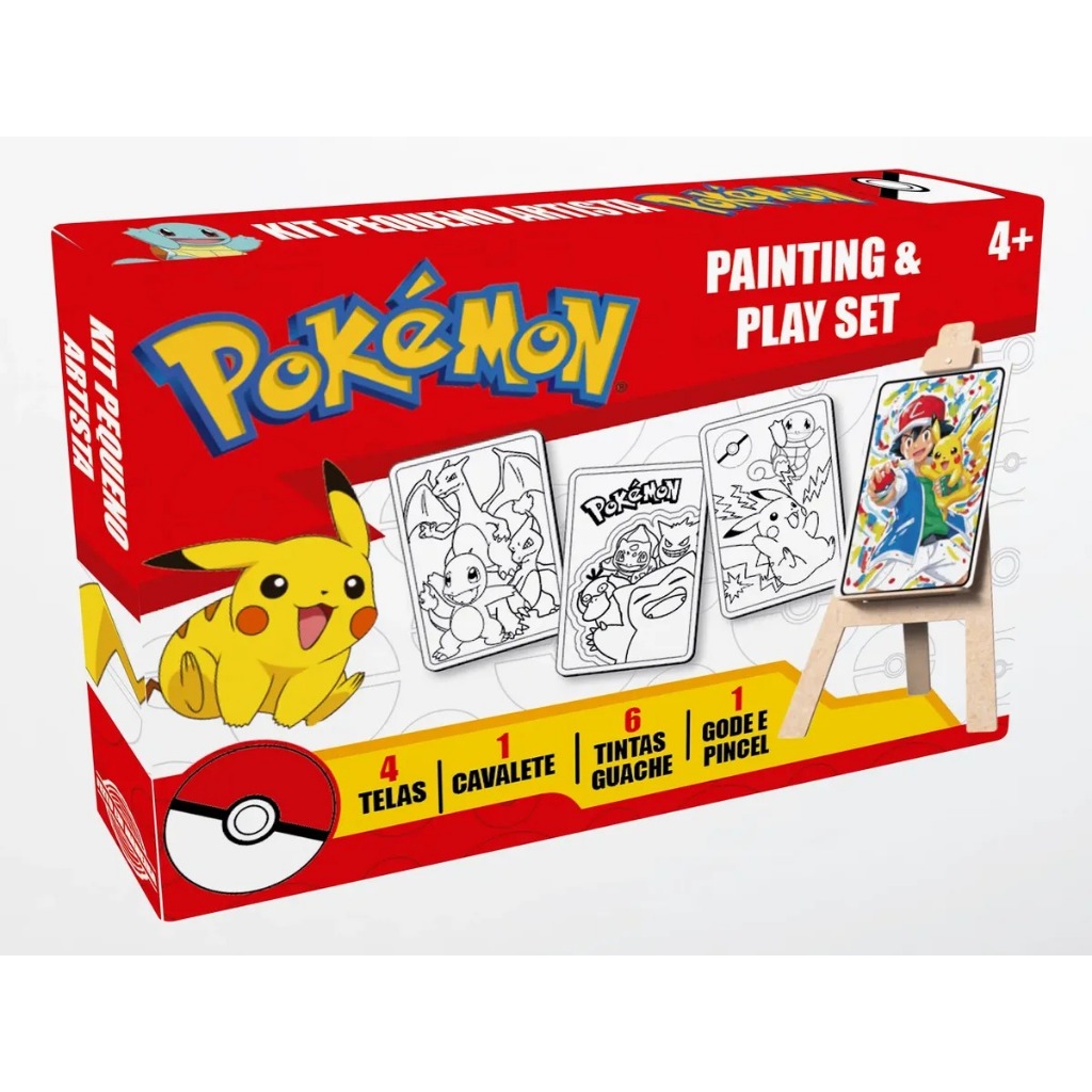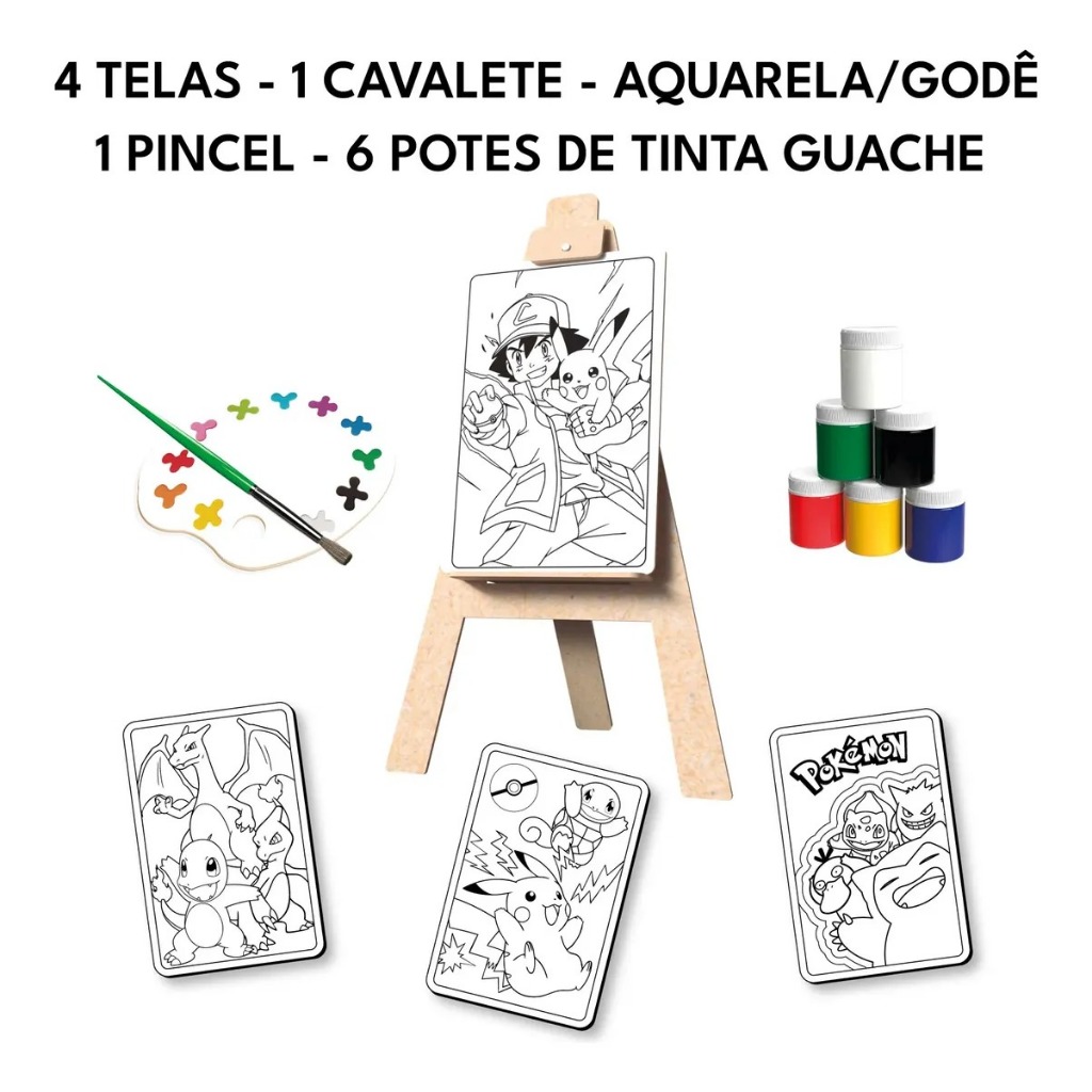 Super Kit Pintura - Pokemon - Criança 4 Telas Cavalete + 6 Tintas - Presente - Infantil - Brinquedo