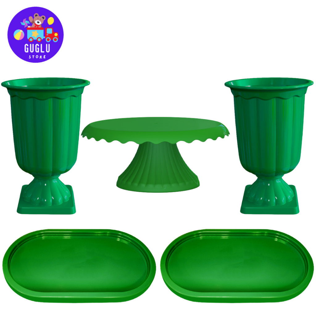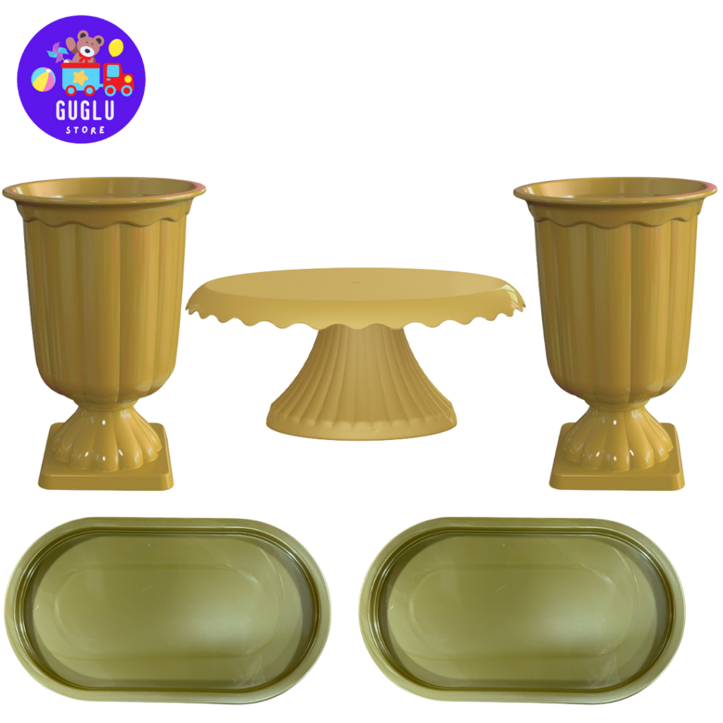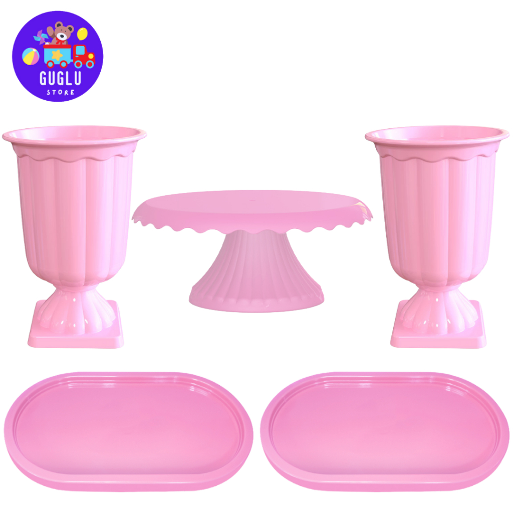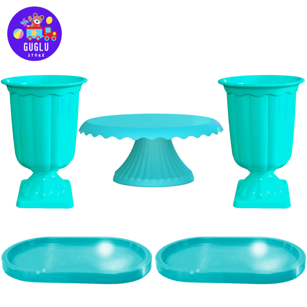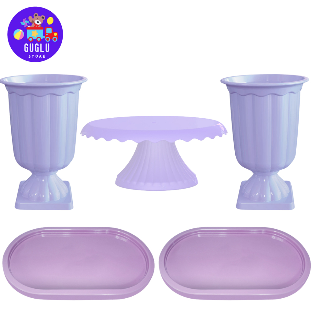 Kit Festa G - 1 Boleira Cake Renda 19cm , 2 Vasos Gregos e 2 Bandeja Oval