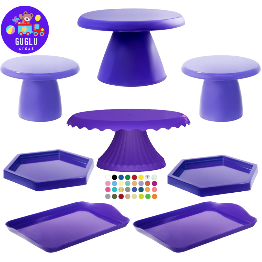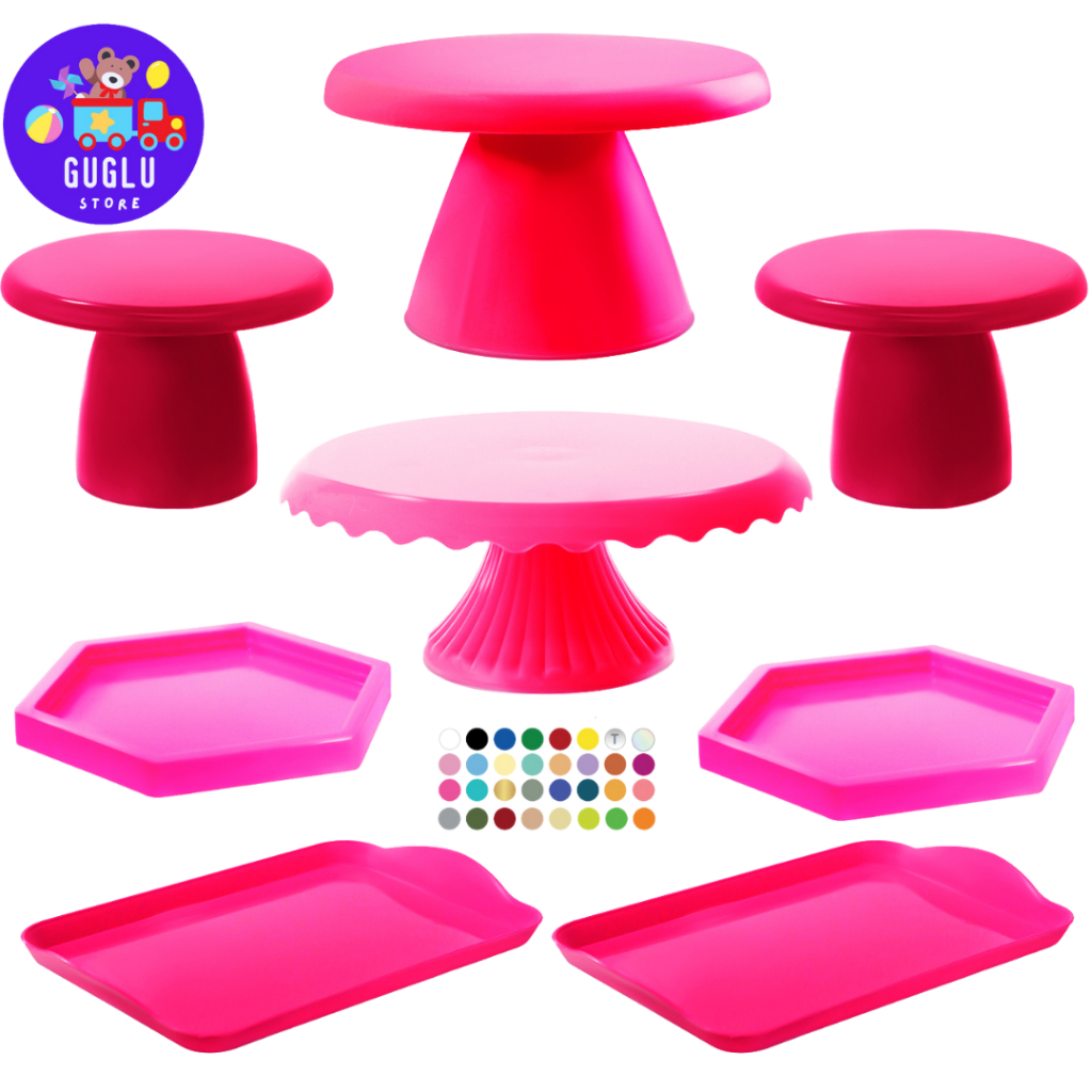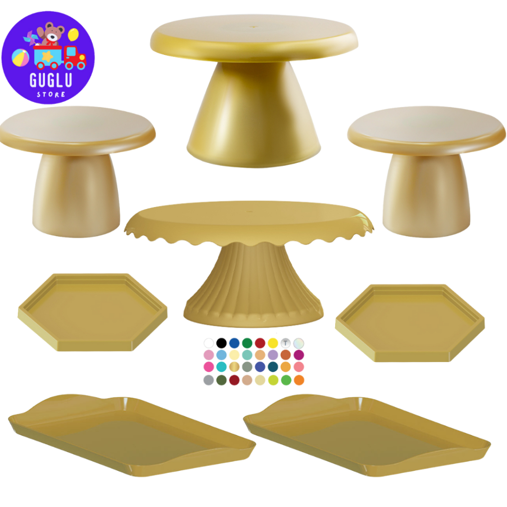 Kit Mesa de Festa- 1 Boleira Cake Slim 17cm , 2 Mini Cake Slim , 1 Boleira Cake Renda 19cm , 2 Mini Sextavada e 2 20x13