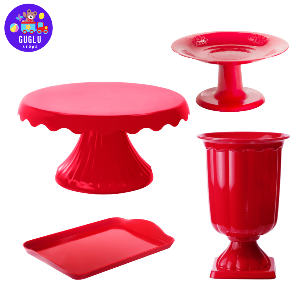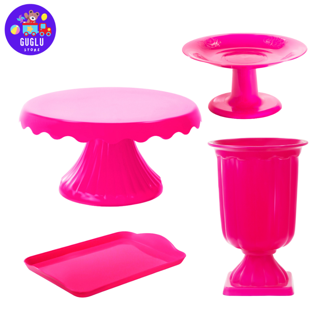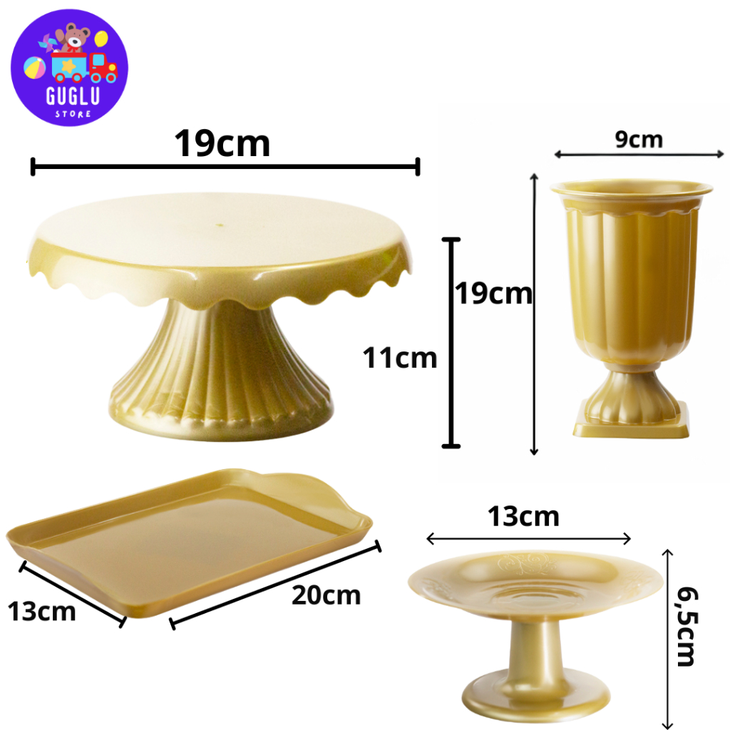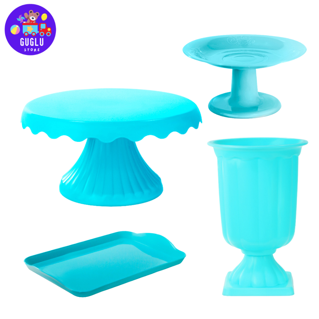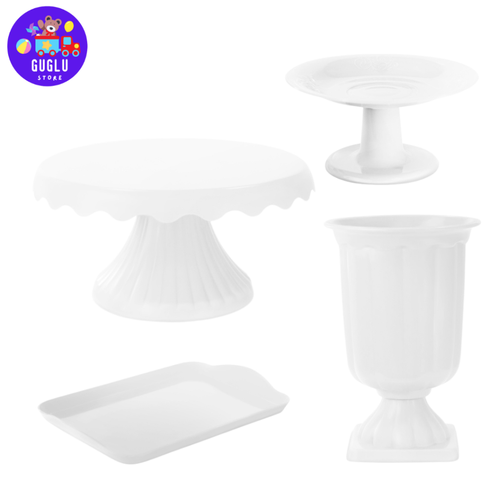 Kit Decoração Festa - 1 Boleira Cake Renda 19cm , 1 Mini Cake , 1 Bandeja 20x13 e 1 Vaso Grego