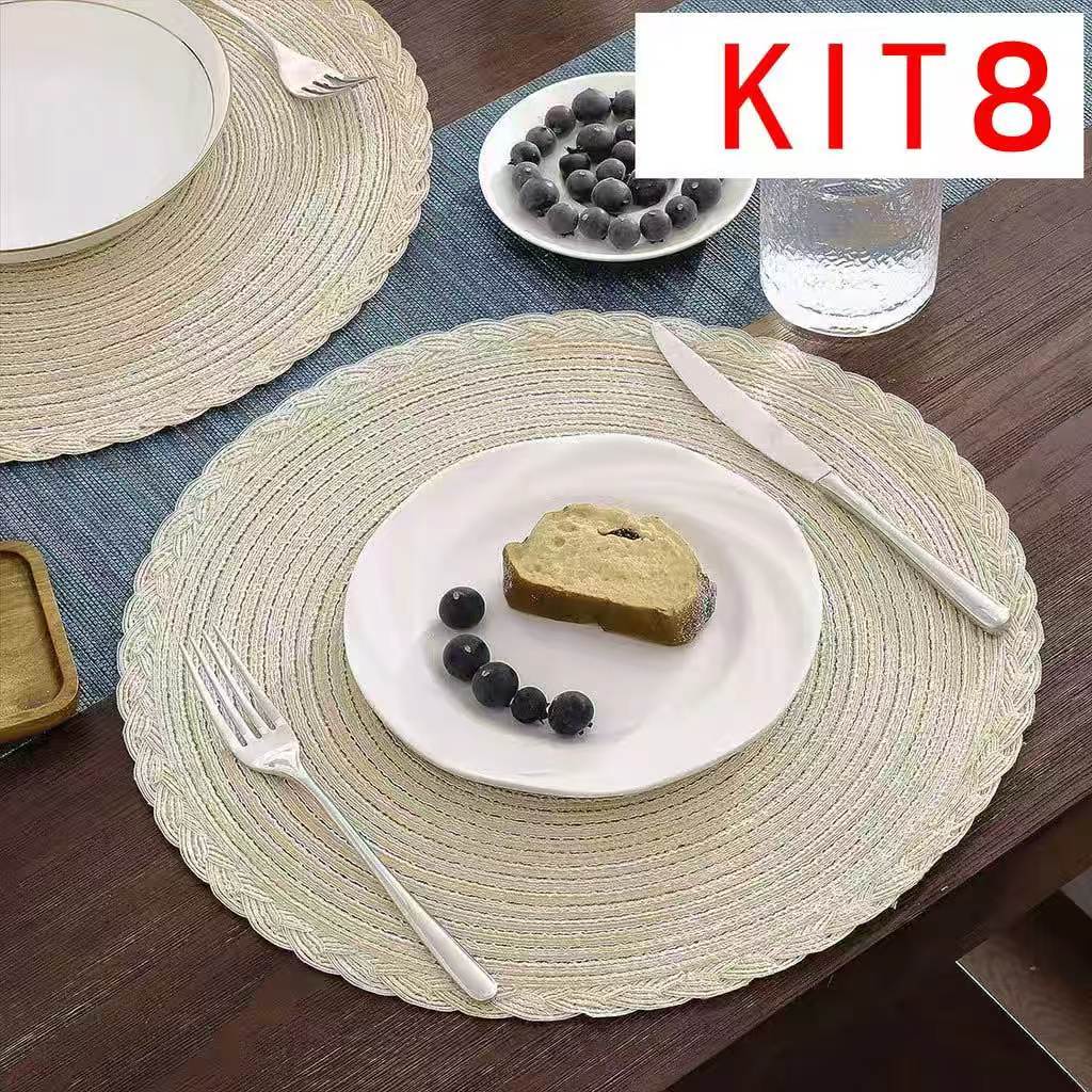 4/8 Peças Jogo Americano Kit Poliéster Algodão e linho Mesa Posta Jantar Design de Rotundidade B1038/B1009