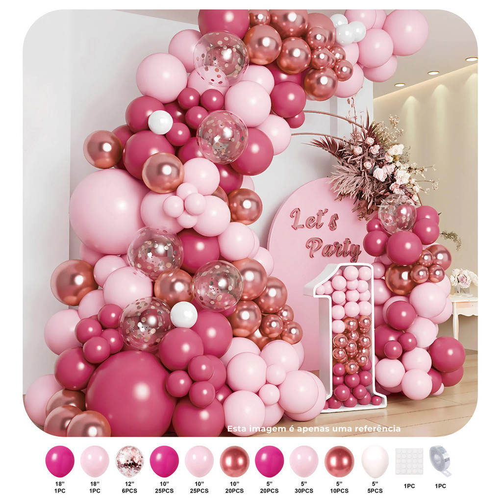 Balão Bexiga Liso Balões Kit 145 Peças Aniversário Festas Para Criança Meninos Menina s M1012-ROSA