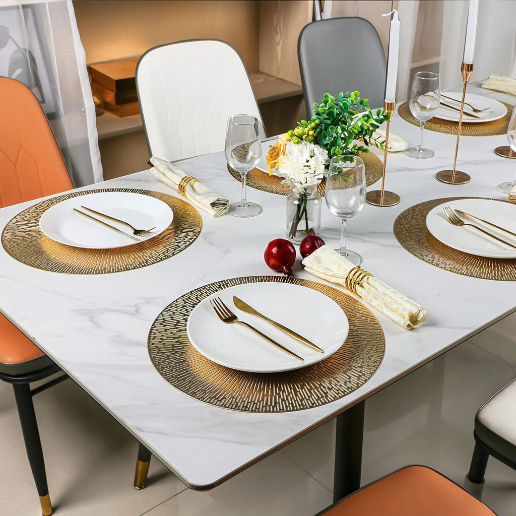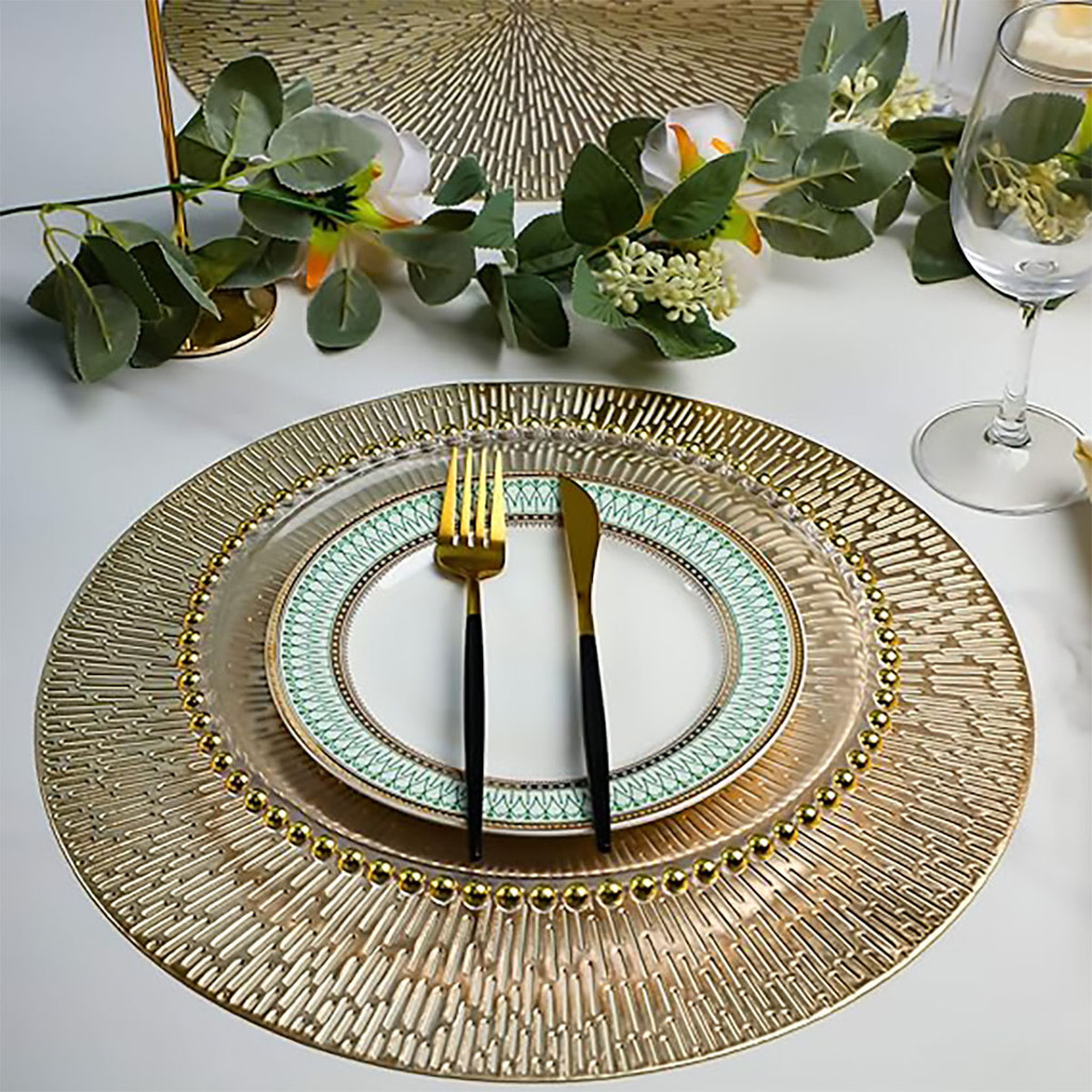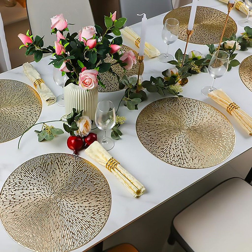 Jogo Americano Sousplat Kit 6 PVC Redondo Dourado Para Mesa de Cozinha Sala de Jantar