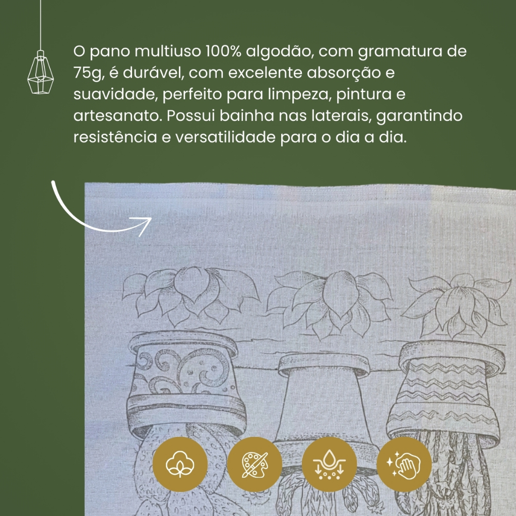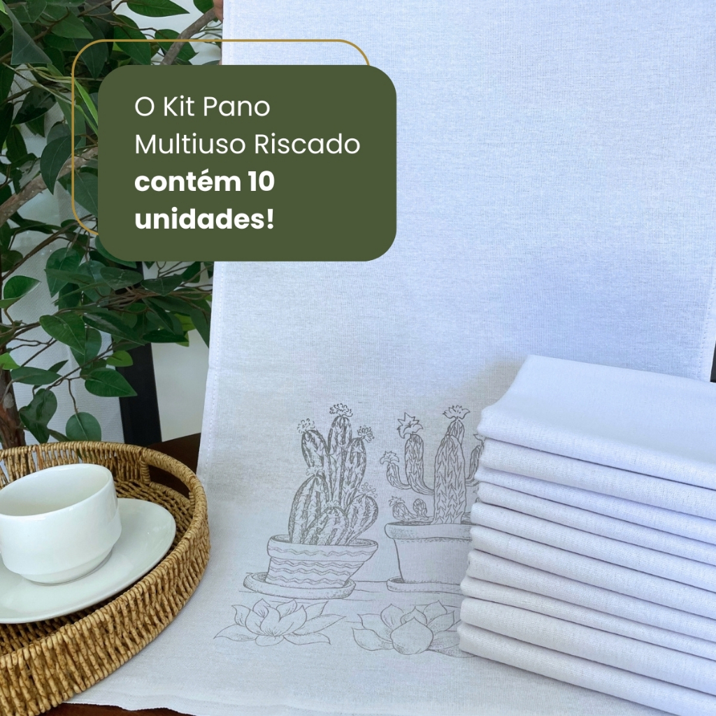 Kit 10 Panos de Prato Riscado 70x45cm Para Cozinha Artesanato Pintura 100% Algodão Engomatextil
