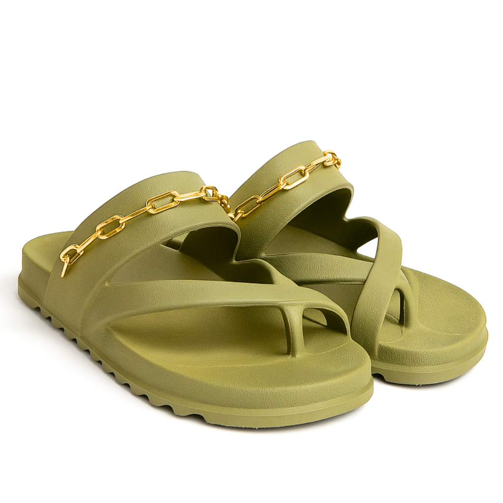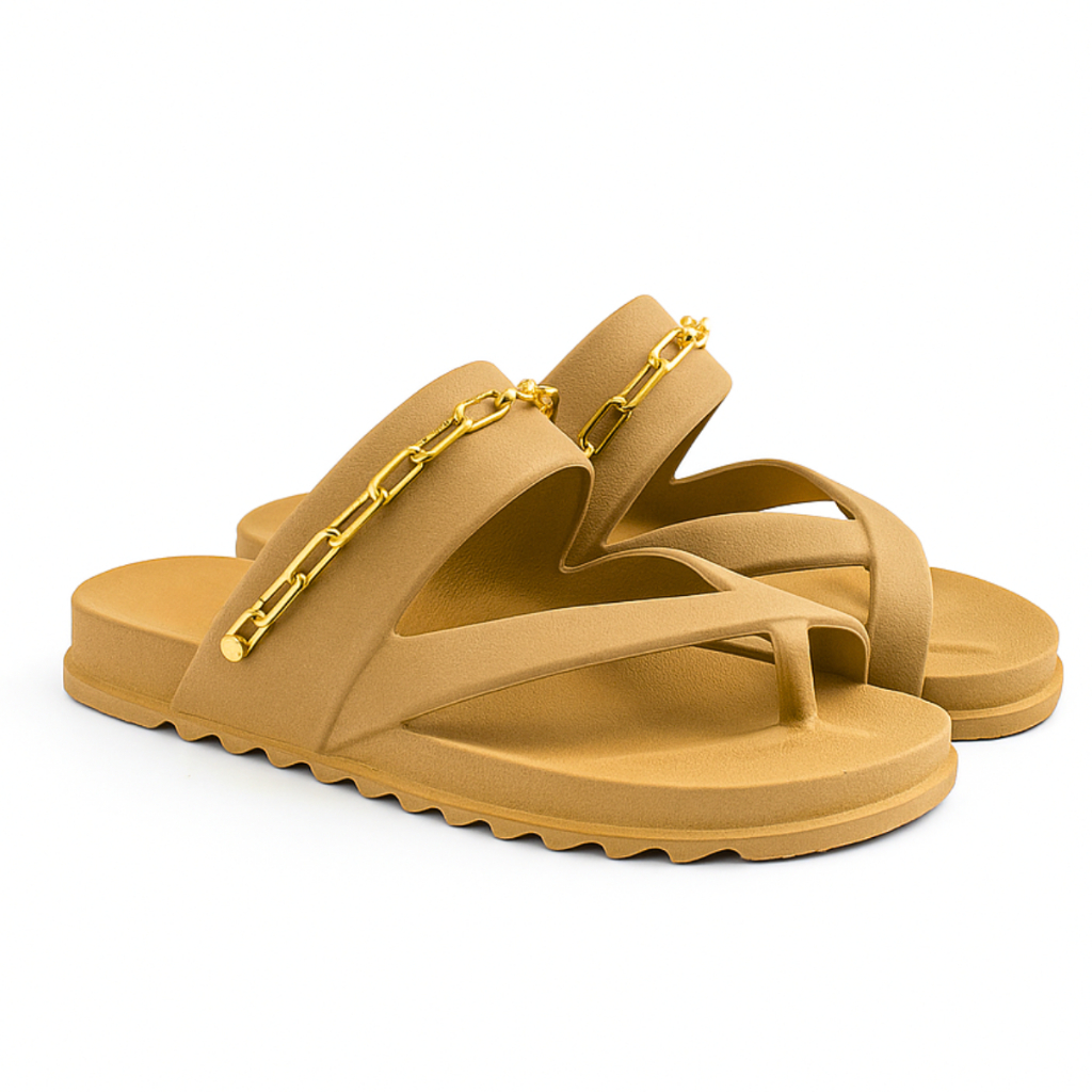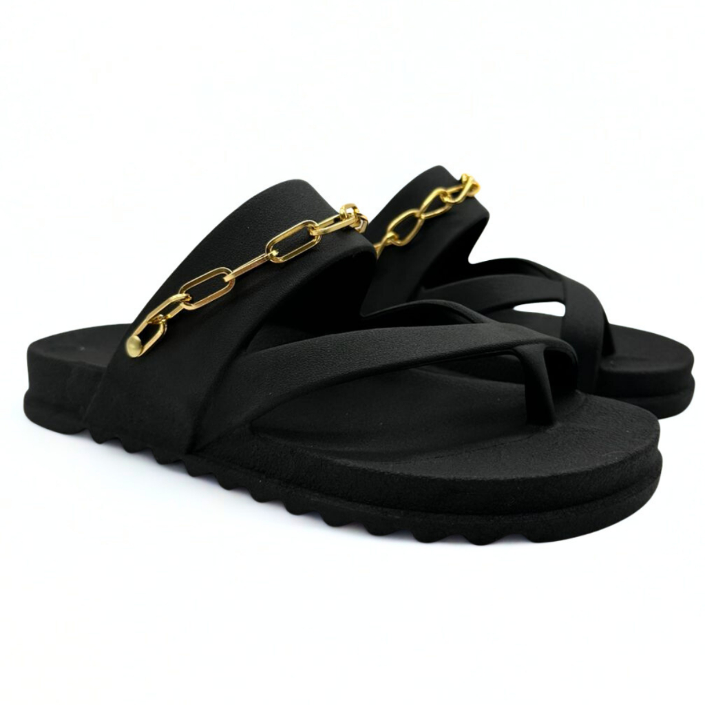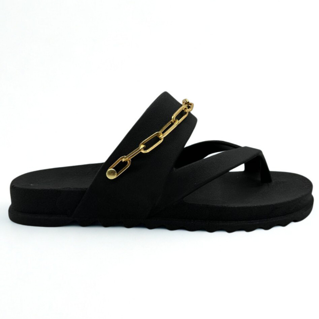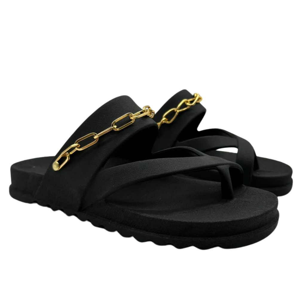 Chinelo Papete Feminina Sandália Rasteirinha sem Salto com Corrente Dourada Sapato Confortável