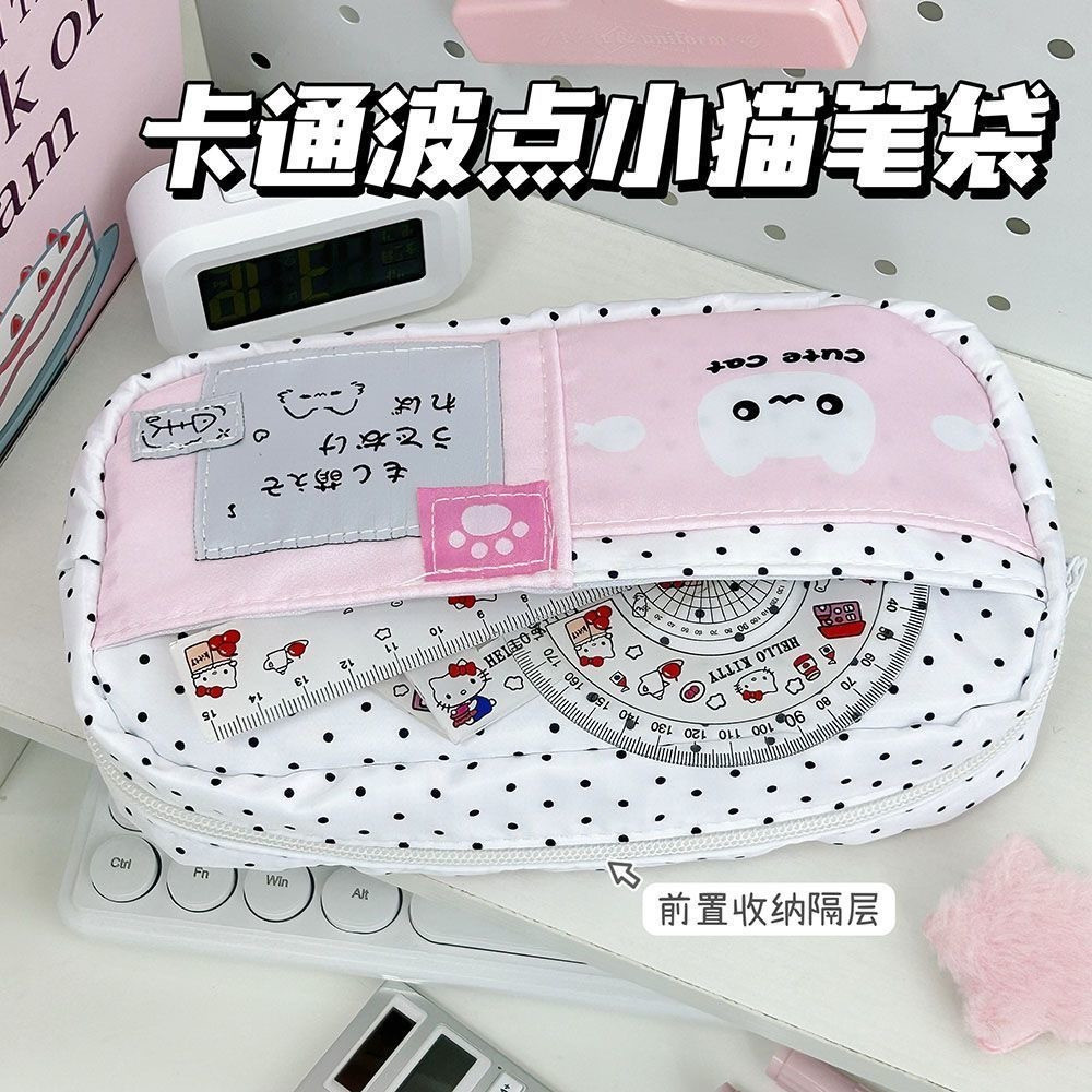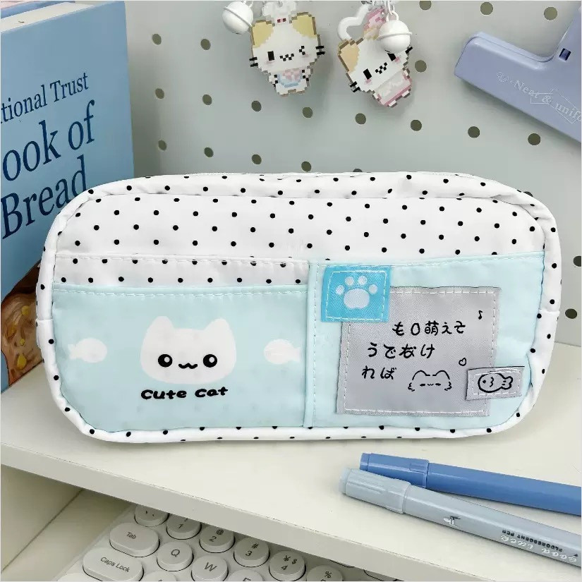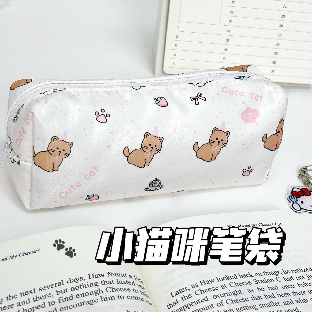Estojo de Lápis de Grande Capacidade, Bolsa de Papelaria de Gato Fofo, Caixa com Zíper, Presente Cosmético Delicado, Prê