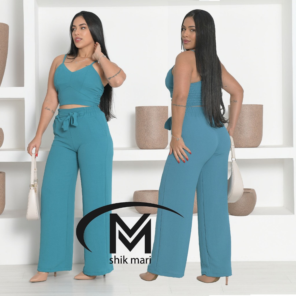 conjunto feminino luxo pantalona e cropped elegante | areia | com bojo mais desejado do ano 2026