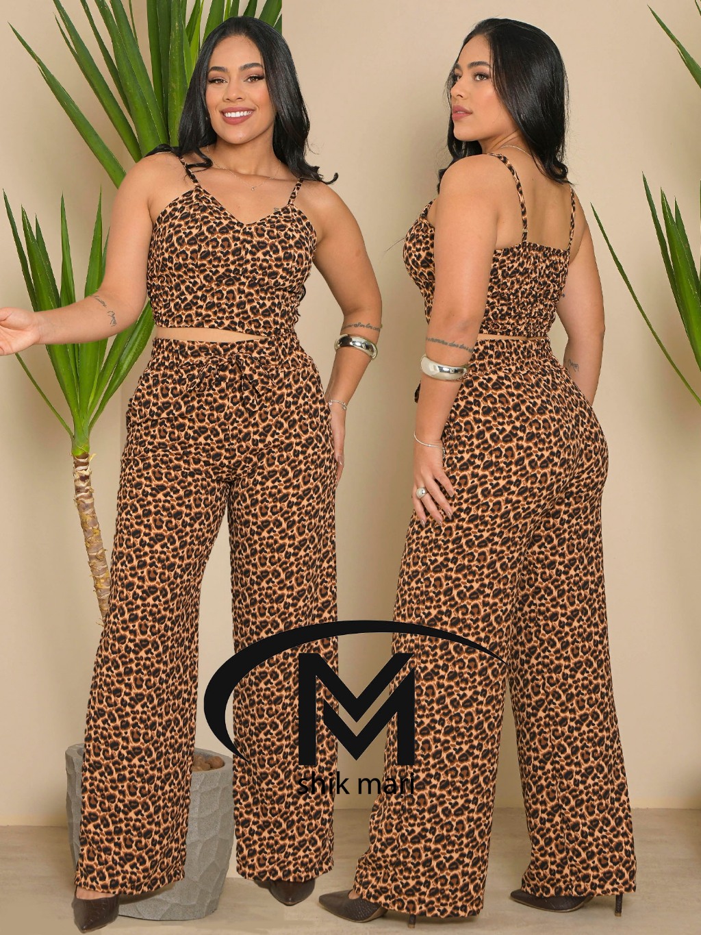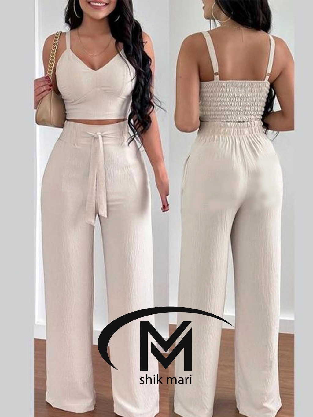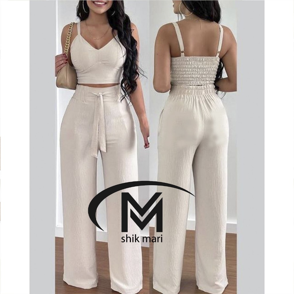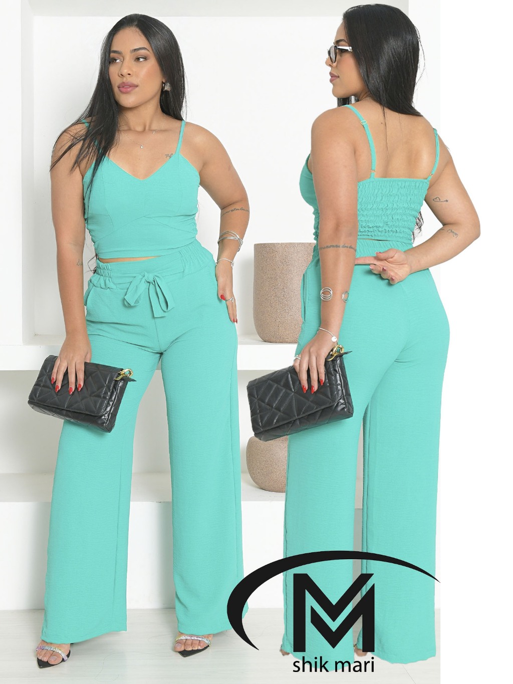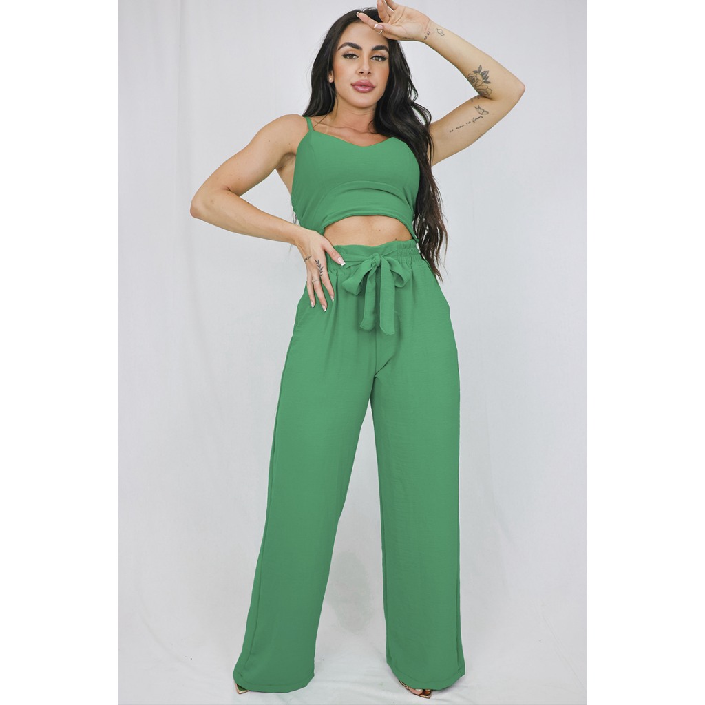 Conjunto feminino preto duna areia calça pantalona e cropped com bojo Alça regulagem novidade verão
