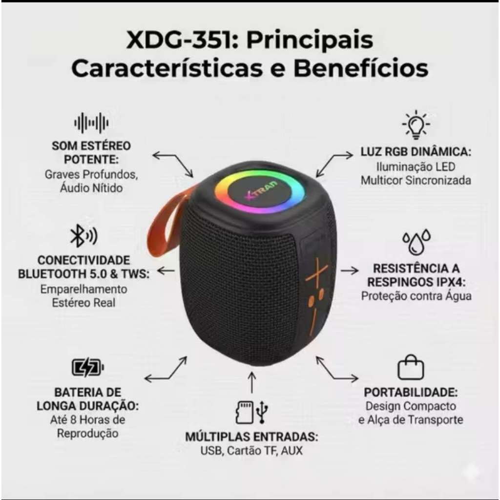 Caixa De Som Bluetooth Portátil Led Tws Ka-8596 XTRAD