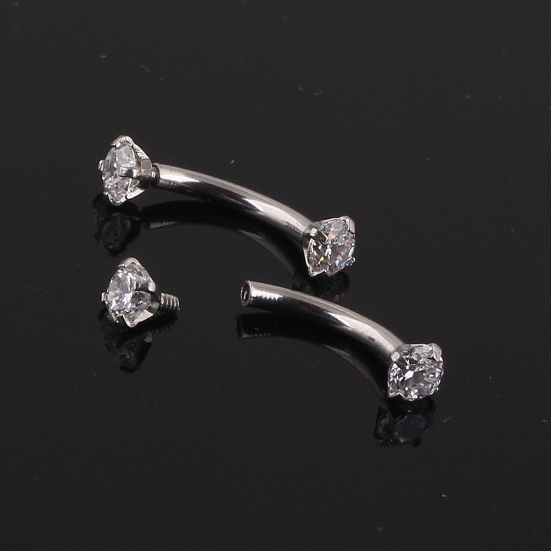 Kit 12 Piercing Microbell Curvo Zircônia Redonda Aço Tragus, Helix, Rook, Conch, Sobrancelha