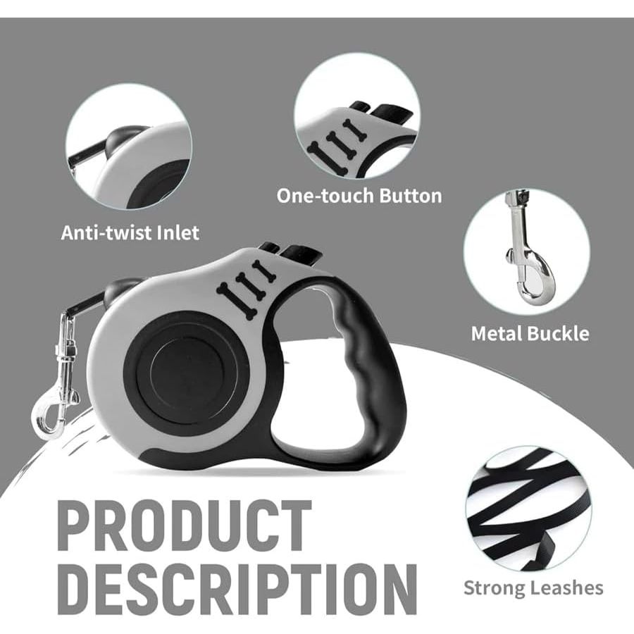 Coleira Guia Retrátil 5 Metros Pets Cachorro Cães Gatos Resistente Com Trava