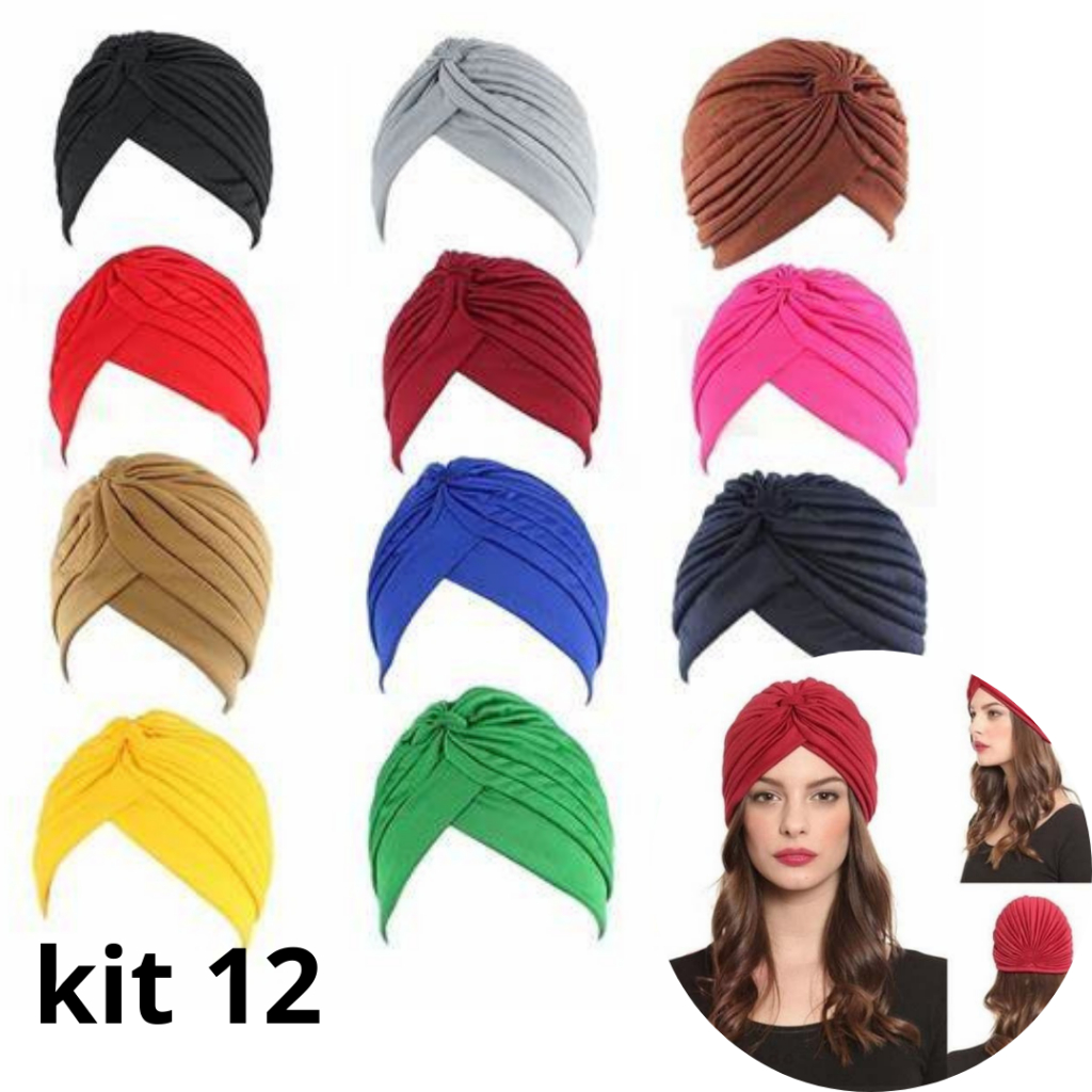kit 12 Turbantes Feminino Indiano Elástico Fechado Estiloso