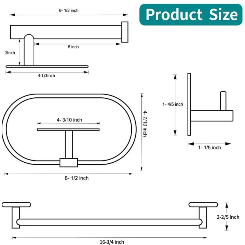 Kit Acessórios Banheiro Cabide Toalheiros Papeleira 4 Peças Cor aleatoria