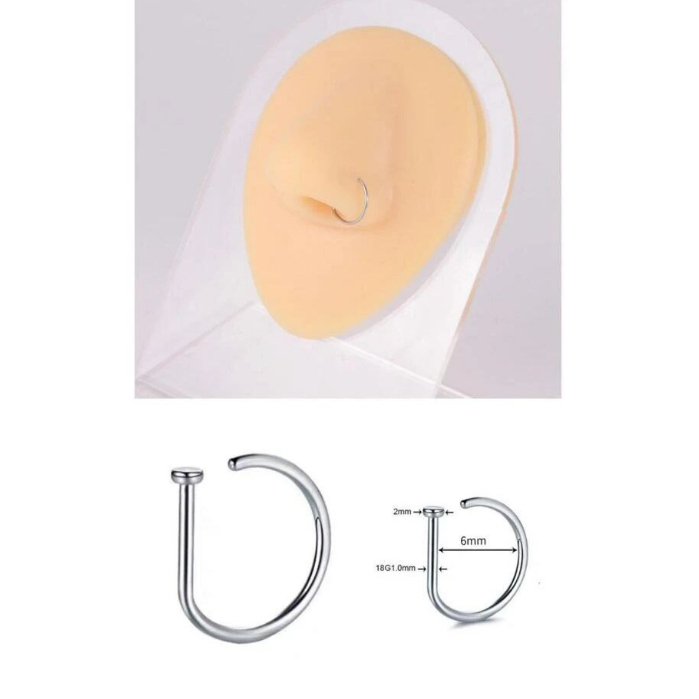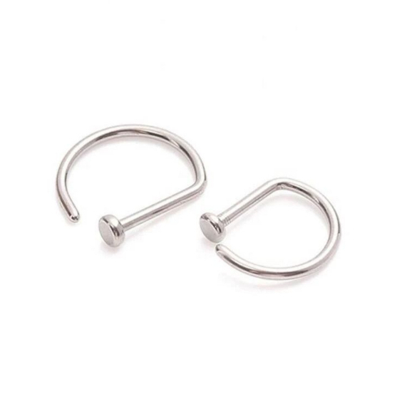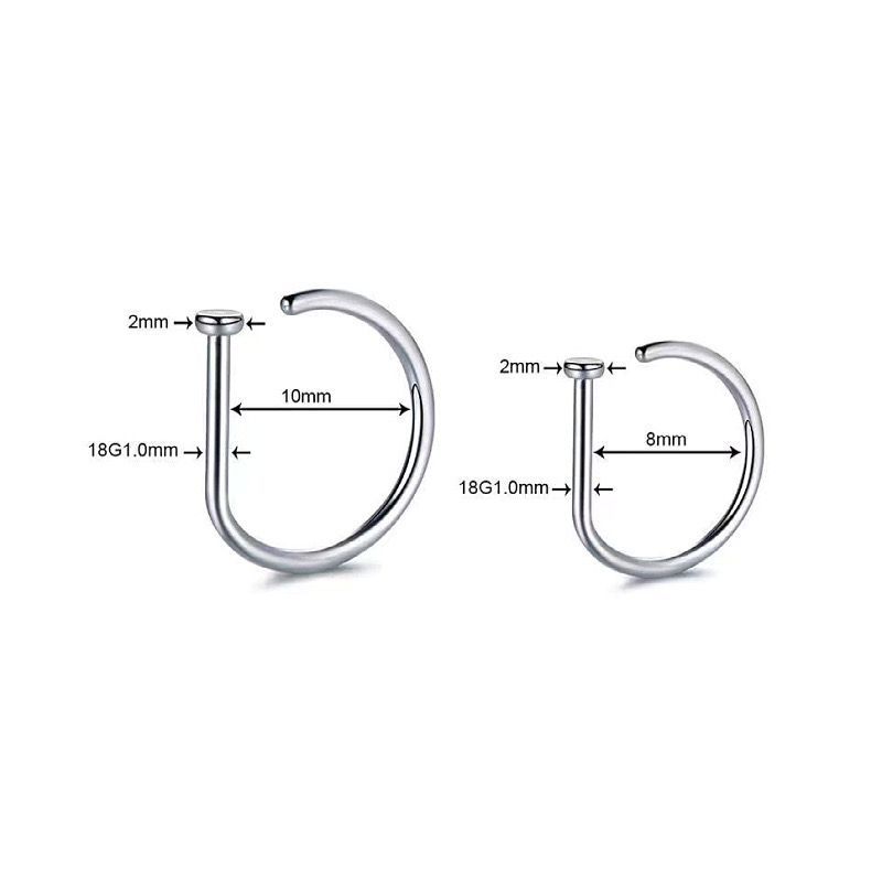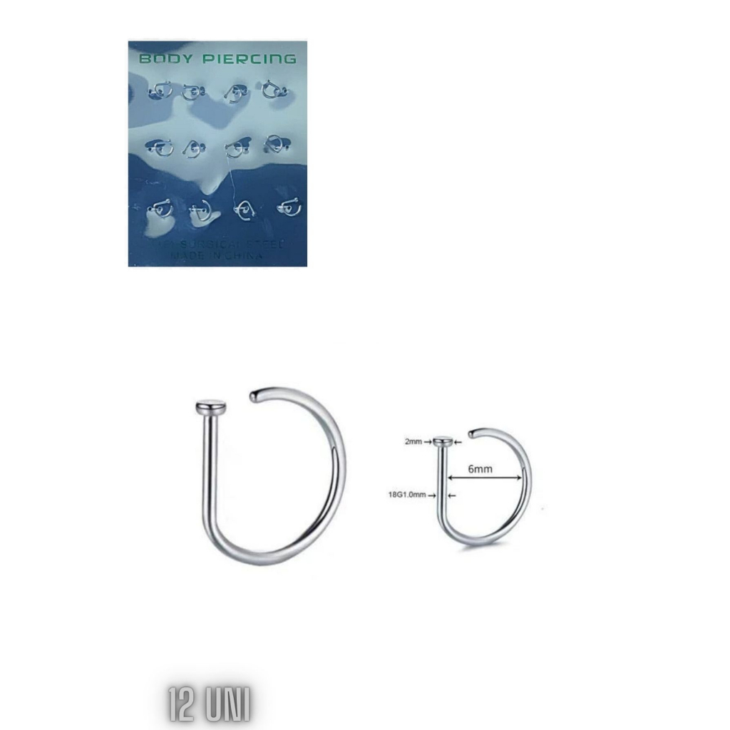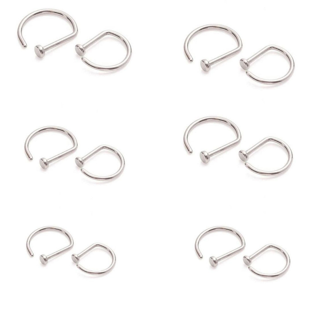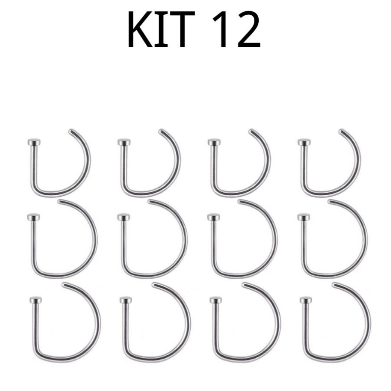 kit 12 Piercing De Nariz Nostril D-ring em aço cirúrgico Cor Prata