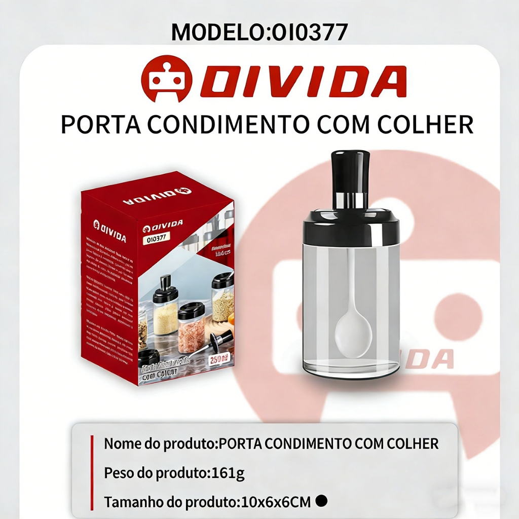 Kit 1/3/6 Porta Temperos em Vidro com Colher Sal, Açucar, Condimentos, Pimenta, Tomilho, Orégano