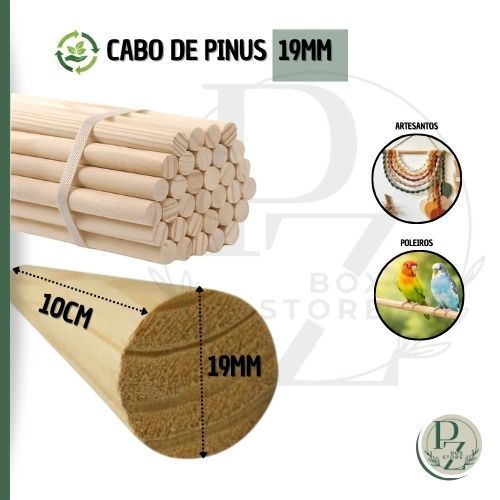 Cabos de Madeira Pinus 5un/19mm -Bastão -Vareta Poleiro para Aves -Bandeira /Banner /Artesanatos