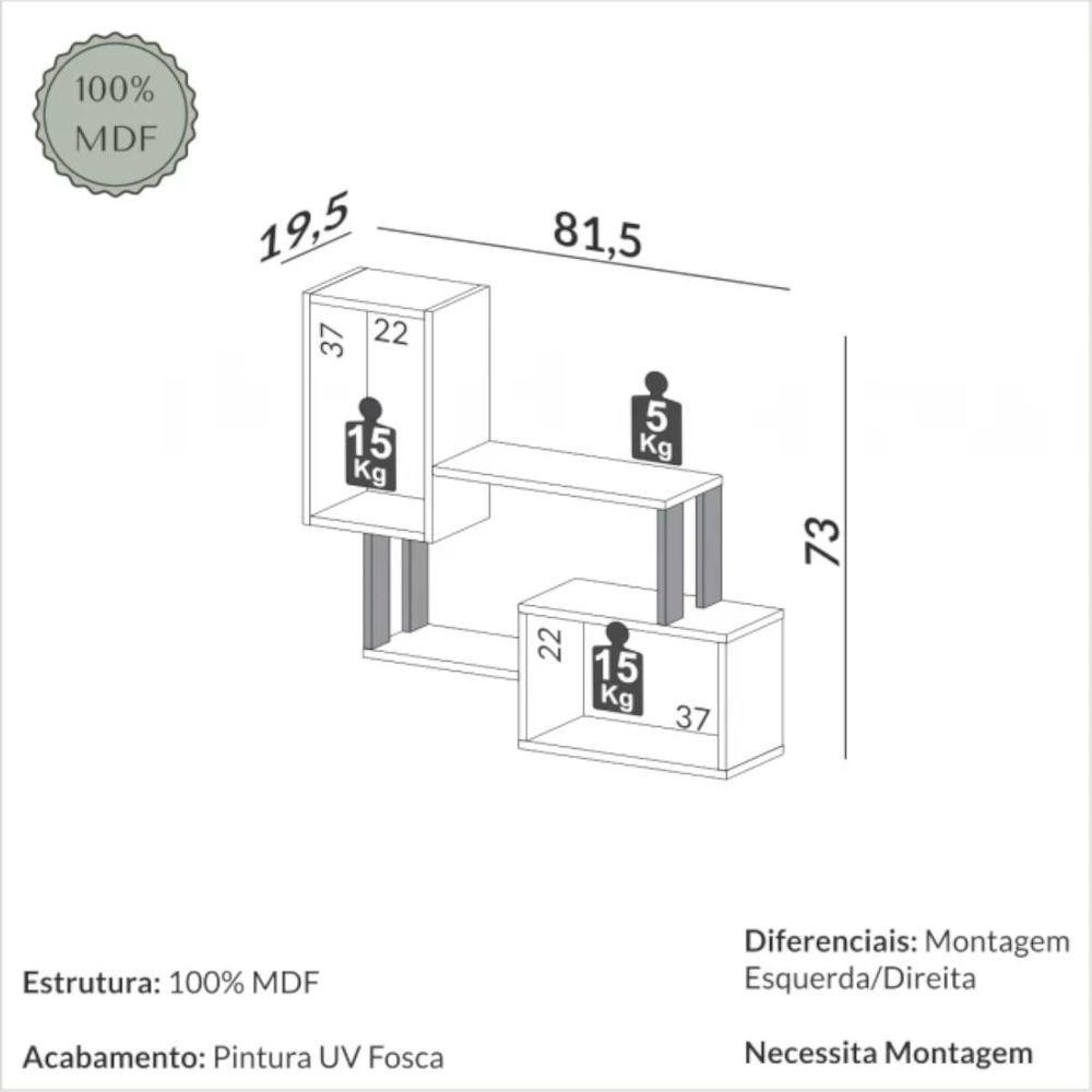 Nicho Retangular em Mdf F25 Freijó Preto 81x73x19 cm Dalla Costa