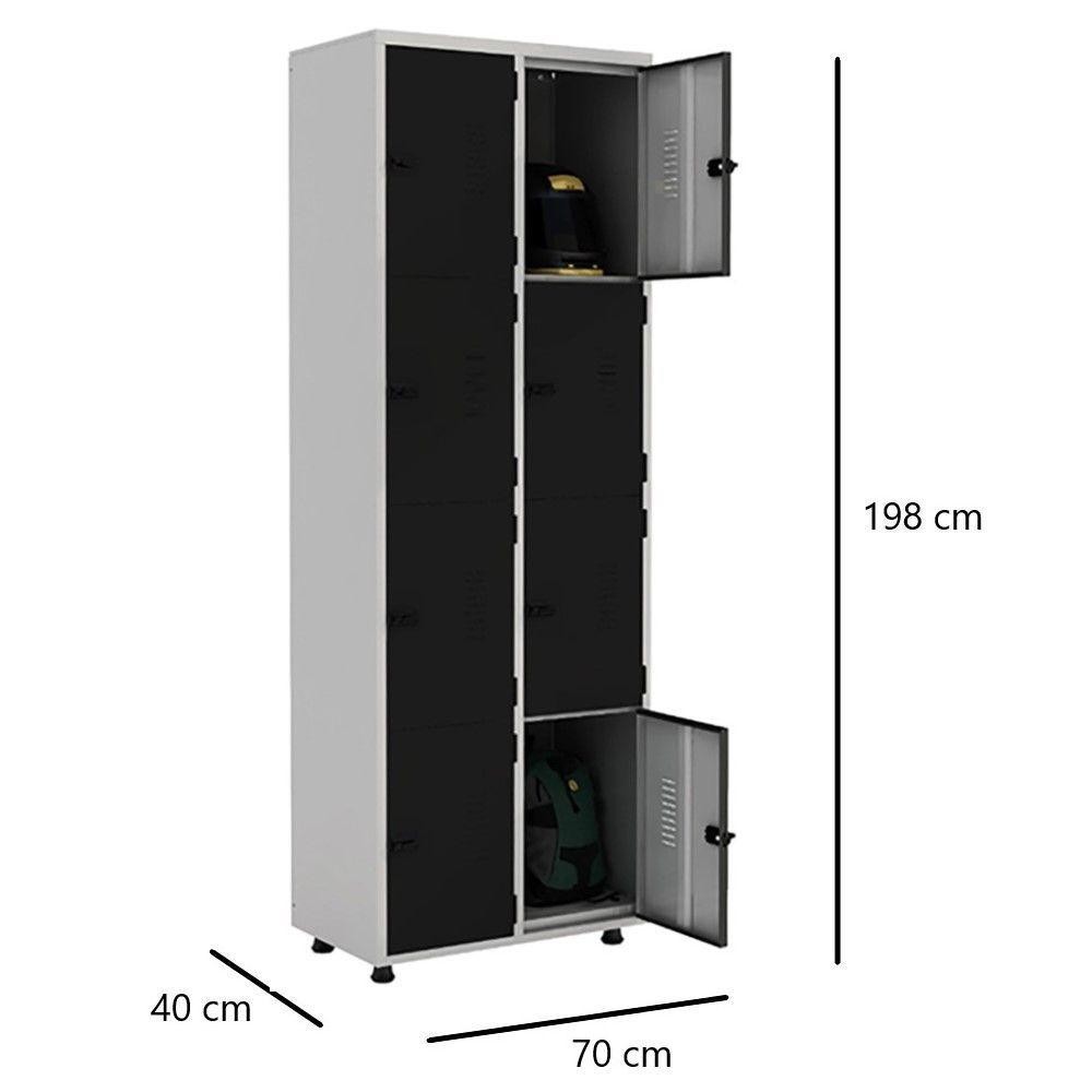 Armário Roupeiro Aço 8 Portas Guarda Volume EA702 Preto