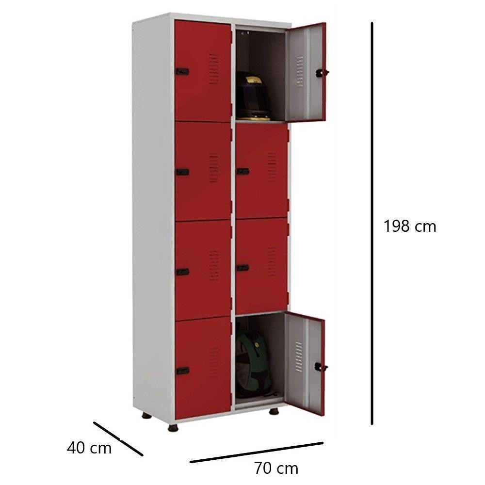 Armário Roupeiro Aço 8 Portas Guarda Volume Ea702 Vermelho
