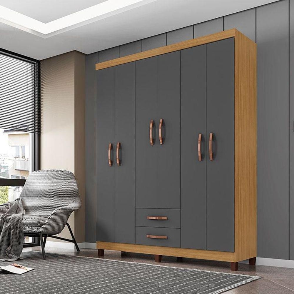 Guarda Roupa Casal Ambiente Modena 6 Portas Carvalho Americano Grafite - Incorplac