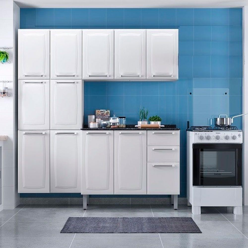 Balcão De Cozinha Luce Em Aço 3 Portas E 2 Gavetas Itatiaia Branco Neve