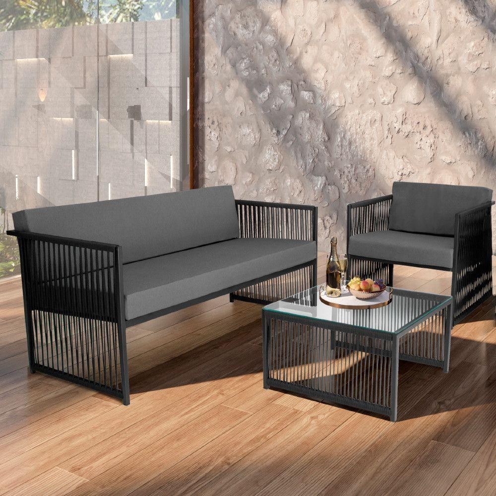 Conjunto Para área Externa De Corda Náutica Preto-cinza