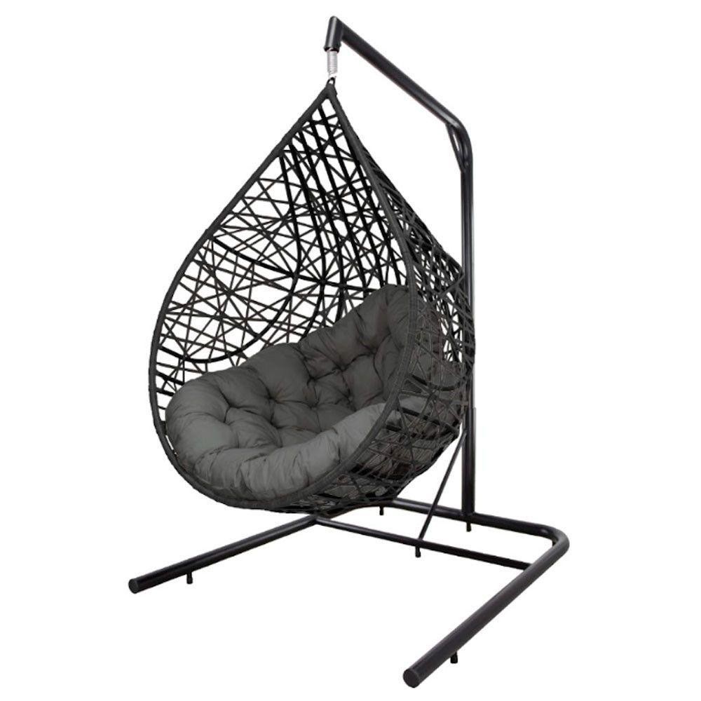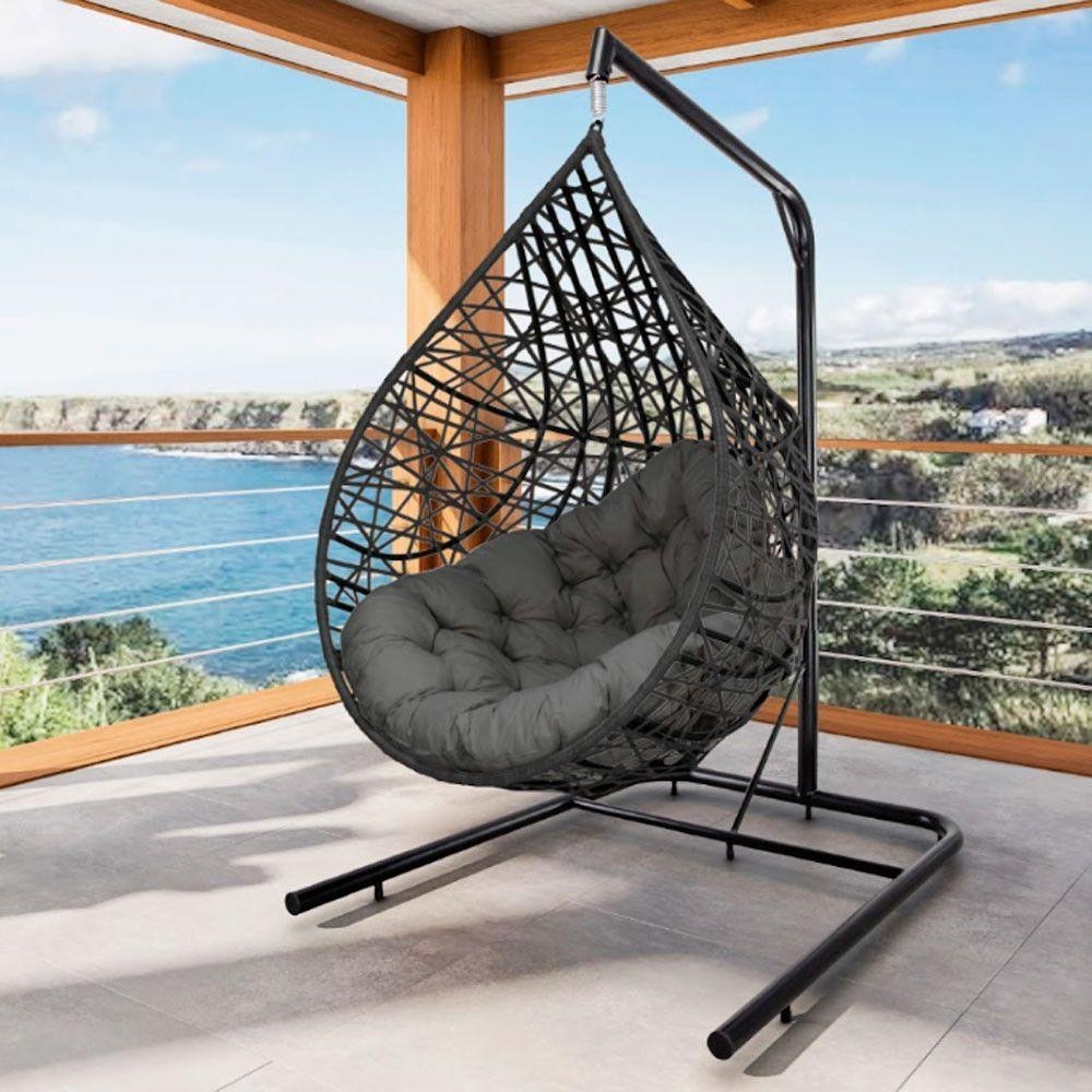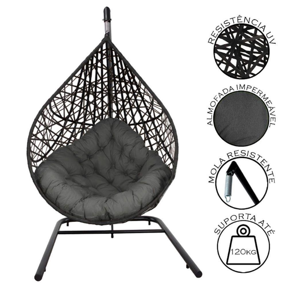 Cadeira Balanço Ninho Suspenso Gota Tramado Almofada Impermeável Acesse Móveis Preto-cinza