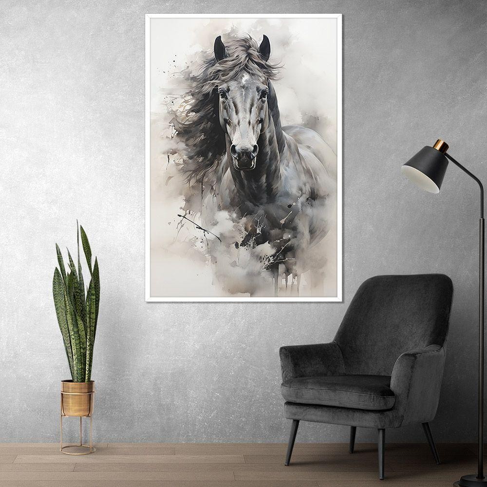 Quadro Decorativo Cavalo Aquarela Moldura Cx Alta 40x60 Titulo Moldura Branca