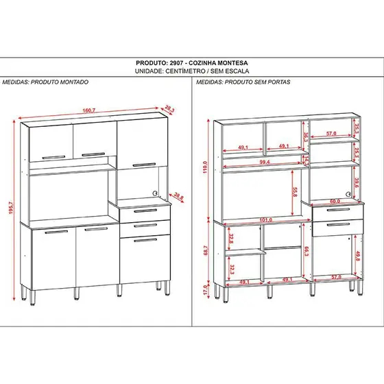 Cozinha Montesa 6 Portas E 2 Gavetas Freijó Gris - Kits Paraná