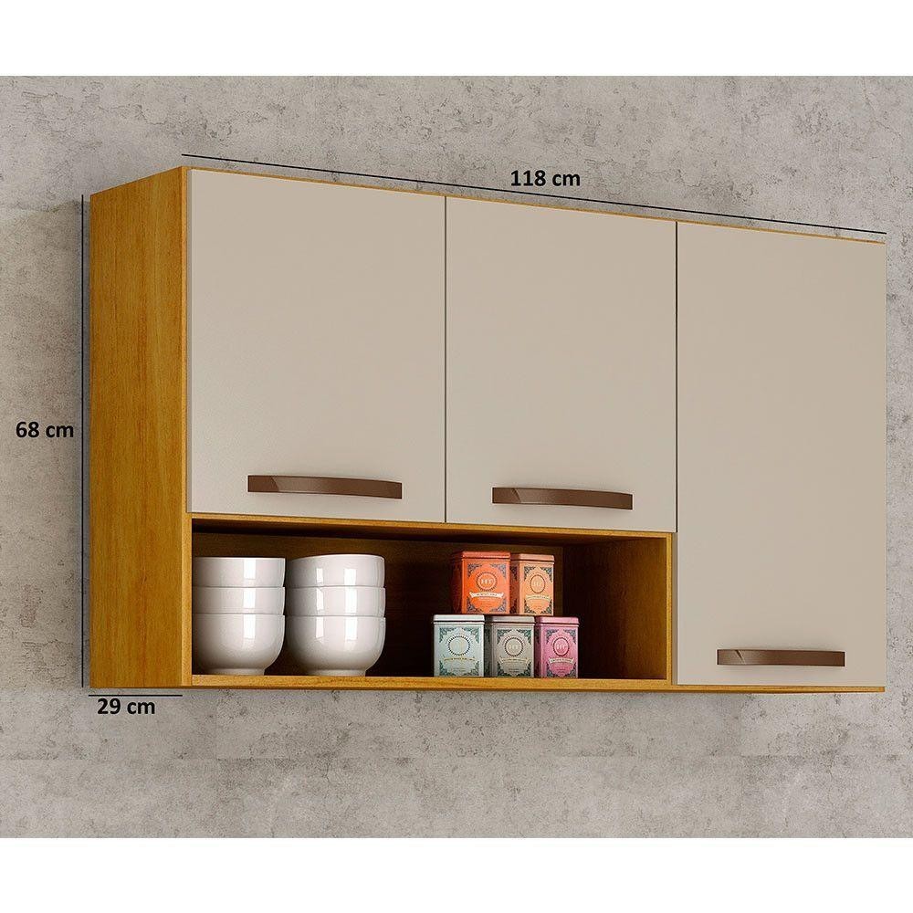 Armário Aéreo Cozinha 3 Portas Maísa Cinamomo-off White