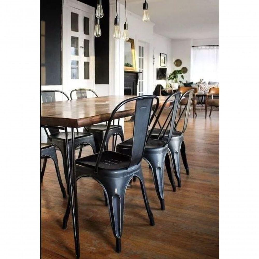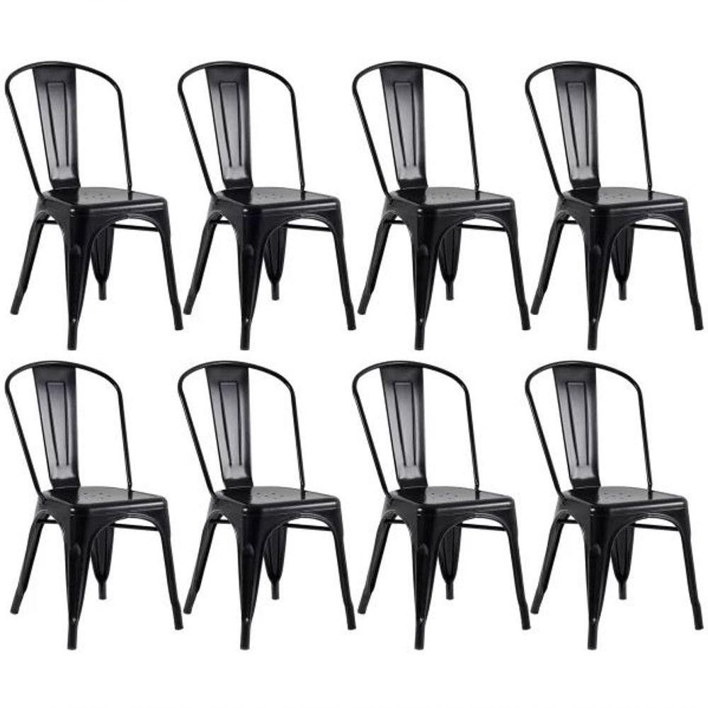 Kit 8 Cadeiras Tolix Iron Design Preta Aço Industrial Sala Cozinha Jantar Bar - Fosco