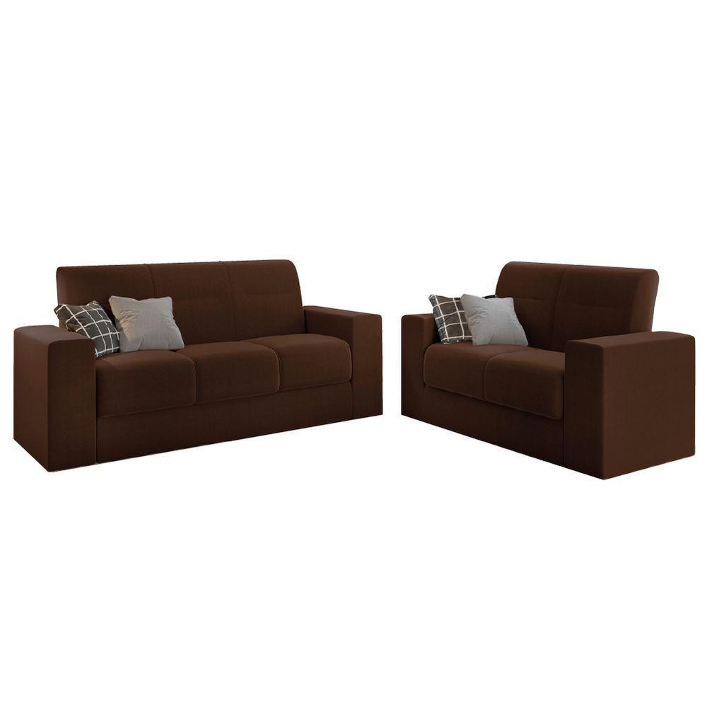 Conjunto De Sofá 2 E 3 Lugares Leon Veludo Mamflex Marrom
