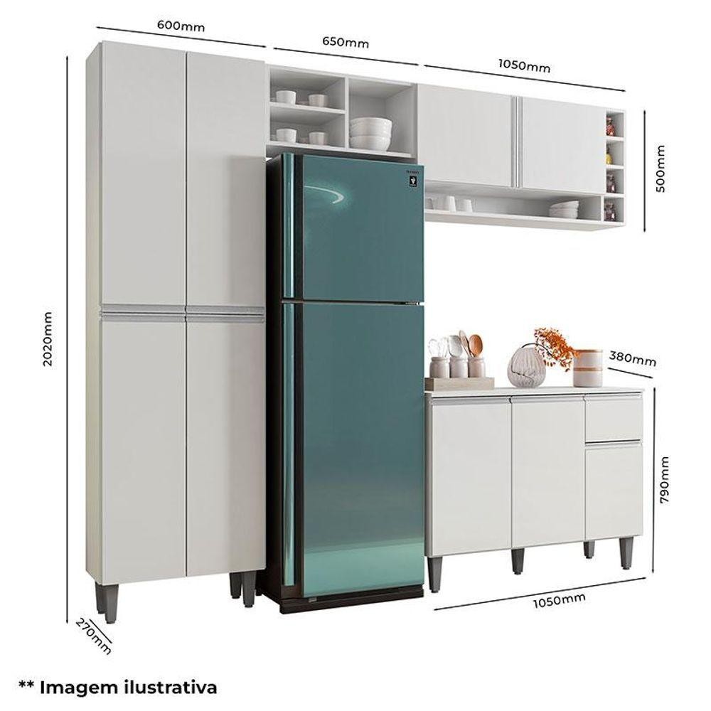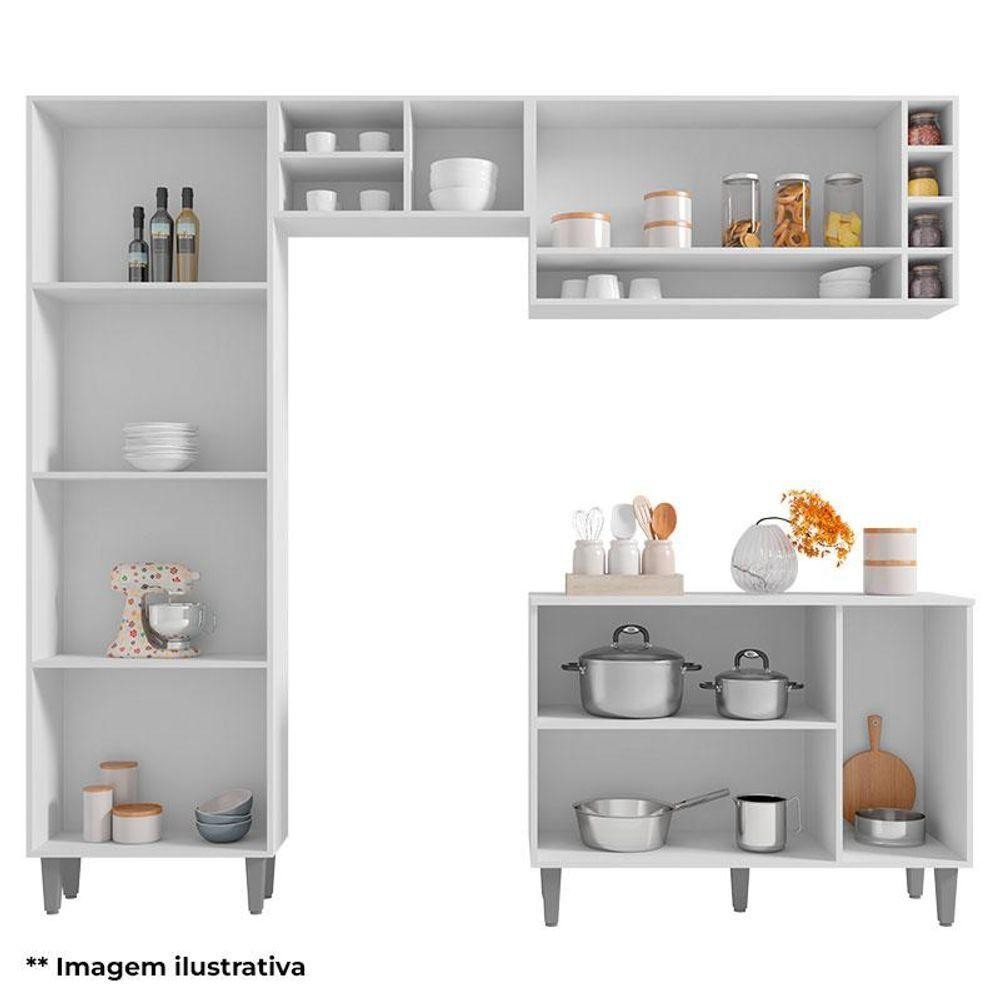 Cozinha Vanessa E Balcão De Pia Tatiane 120cm Amêndoa Branco - Ajl